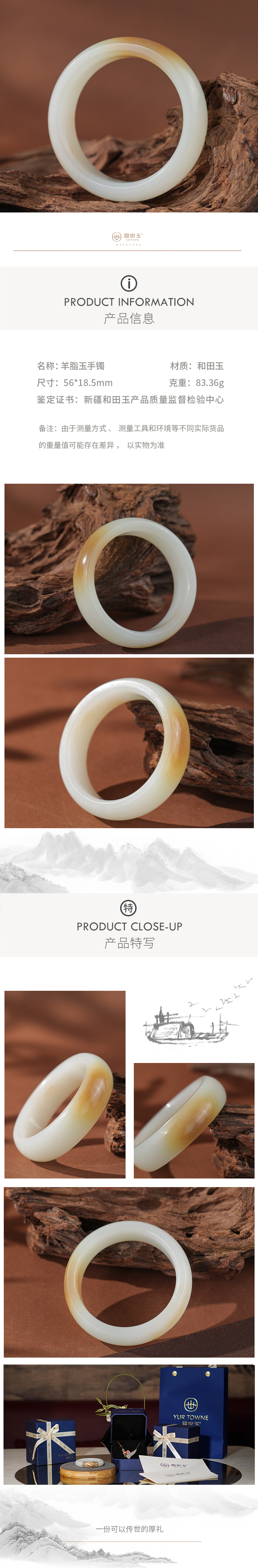 【花颜】一口糖羊脂玉手镯(圈口56.0)