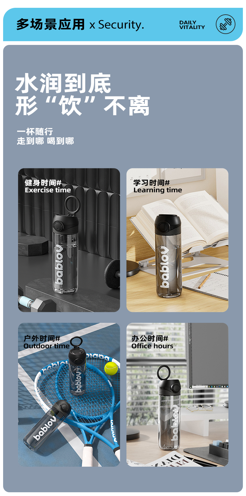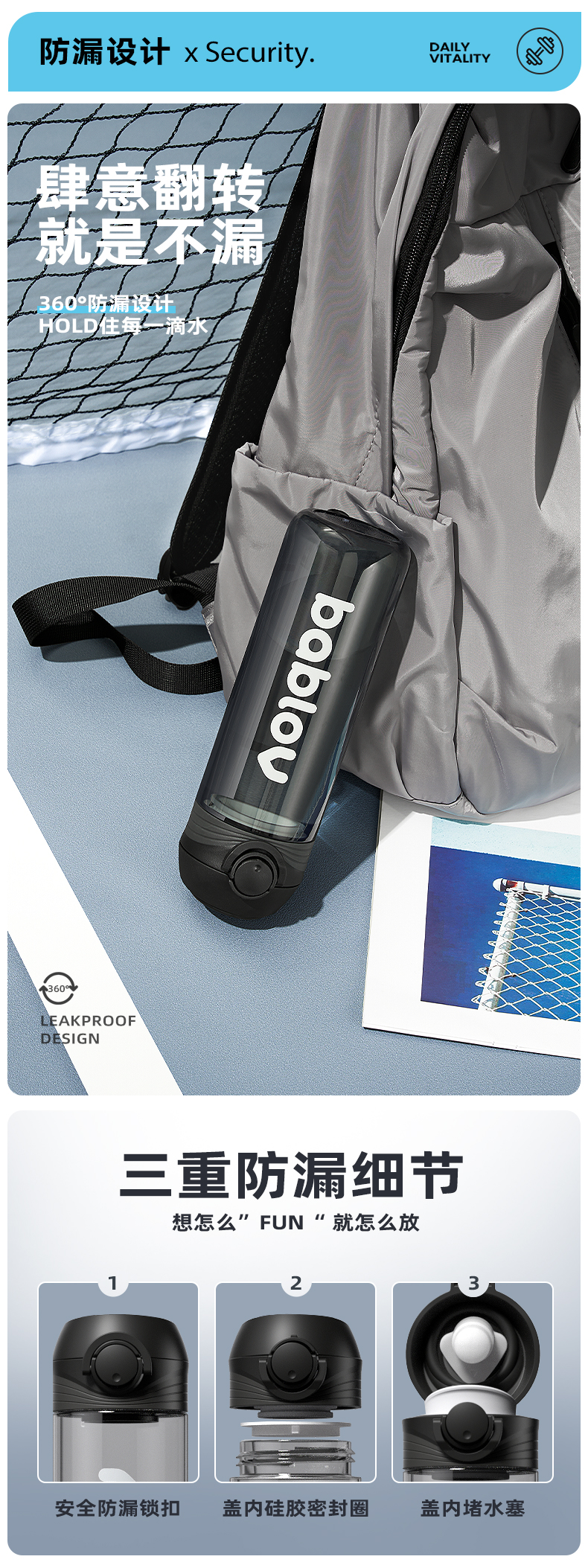 bablov水杯户外便携男女学生防摔大容量塑料运动耐高温健身水壶夏
