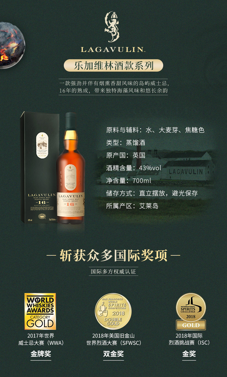 乐加维林16年 艾莱岛威士忌 苏格兰单一麦芽 700ml 泥煤