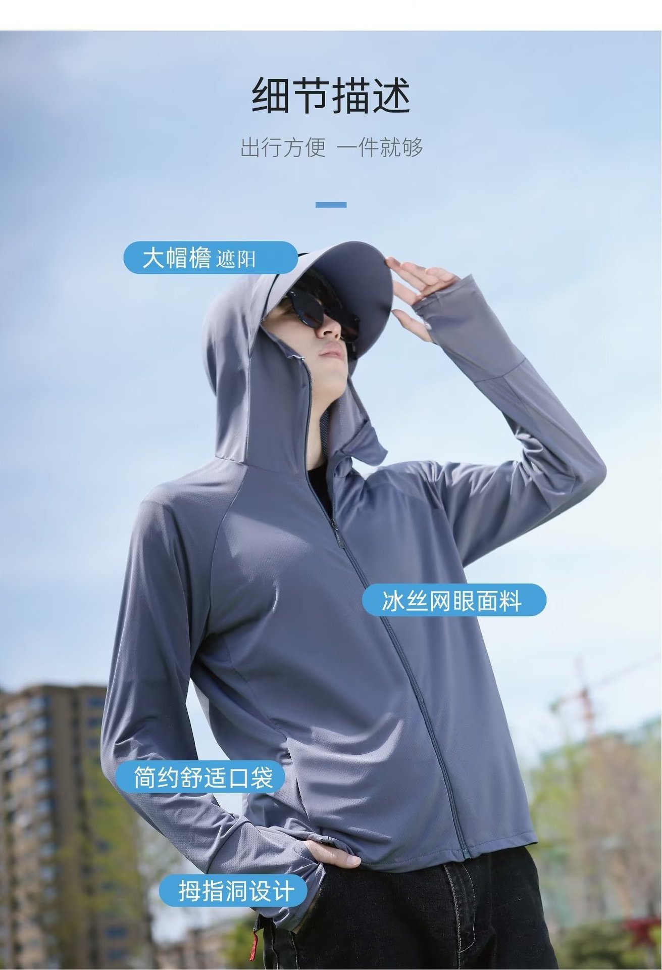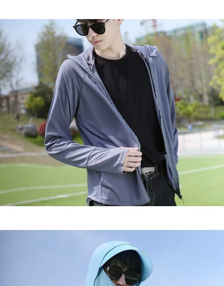防晒衣男士透气冰丝防紫外线2024新款夏季薄款钓鱼男装连帽服外套