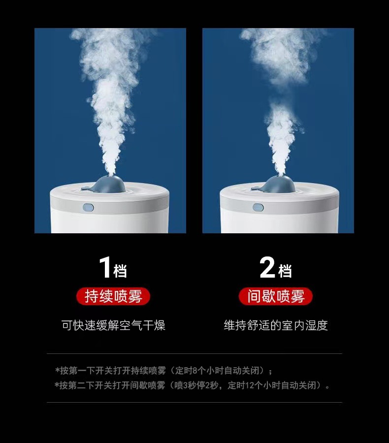 usb蓝鲸加湿器家用大雾量办公室桌面大容量无线空气净化器香薰机