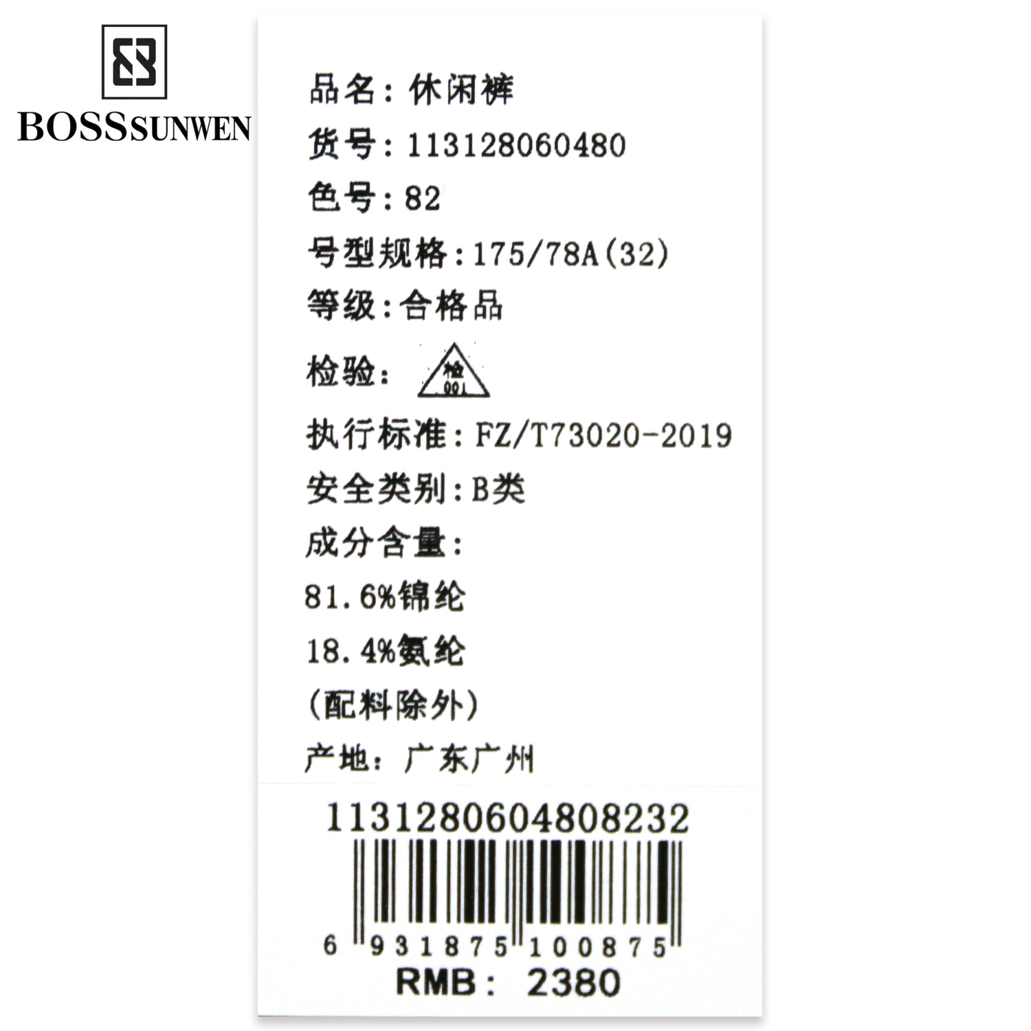 博斯绅威BOSS SUNWE休闲裤113128060480