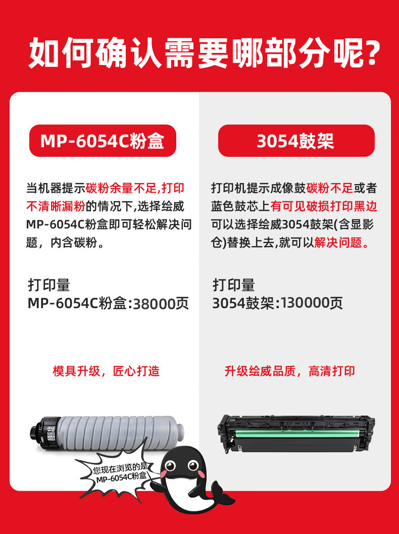 绘威MP-6054C粉盒 适用理光RICOH MP 4054 4054SP 4055SP 5054 5054SP 5055SP 6054 6054SP 6055SP打印机墨粉