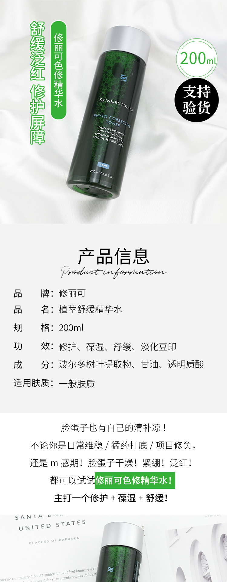 新品 修丽可植萃舒缓精华水200ml (色修精华水)(正装)