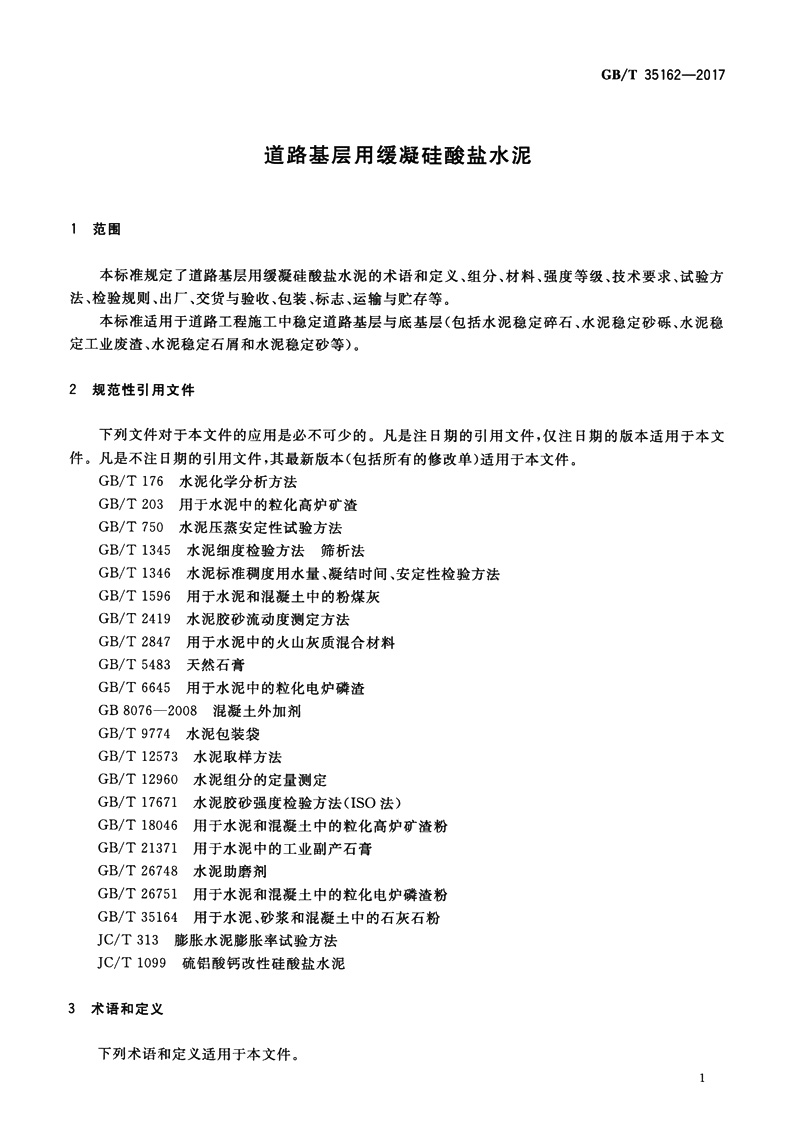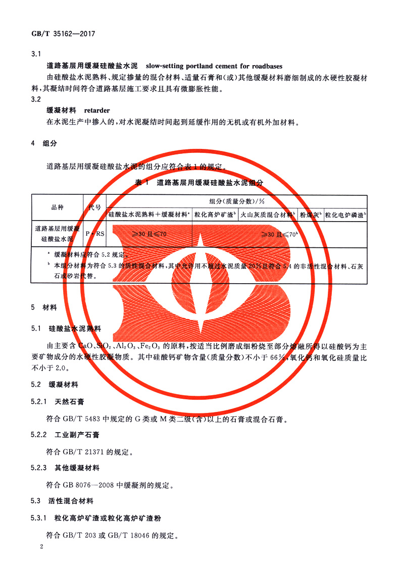 | GB/T 35162-2017 道路基层用缓凝硅酸盐水泥 | ||