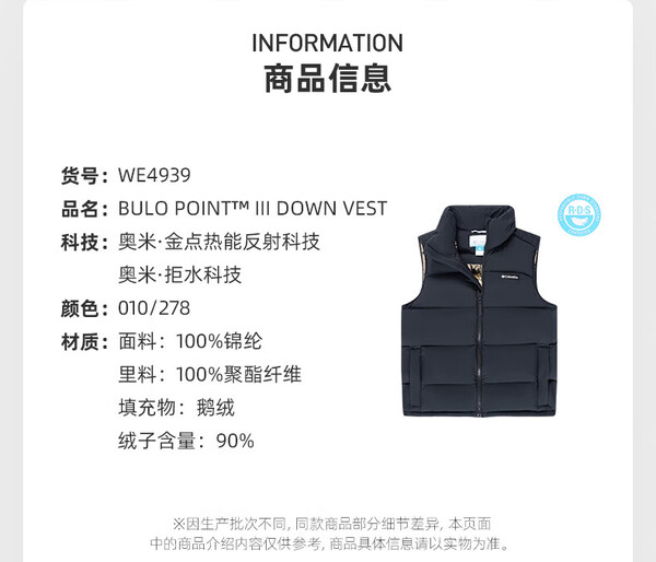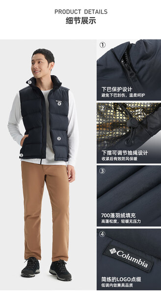 哥伦比亚男式拒水羽绒马甲WE4939
