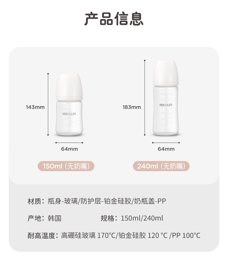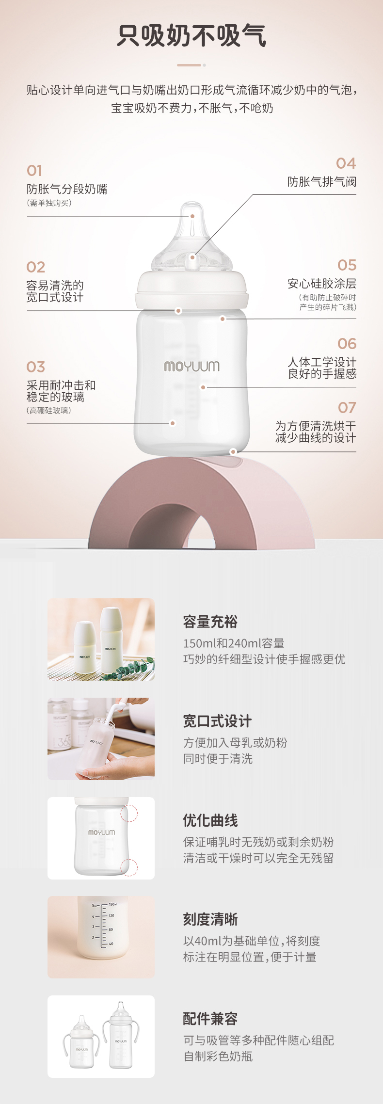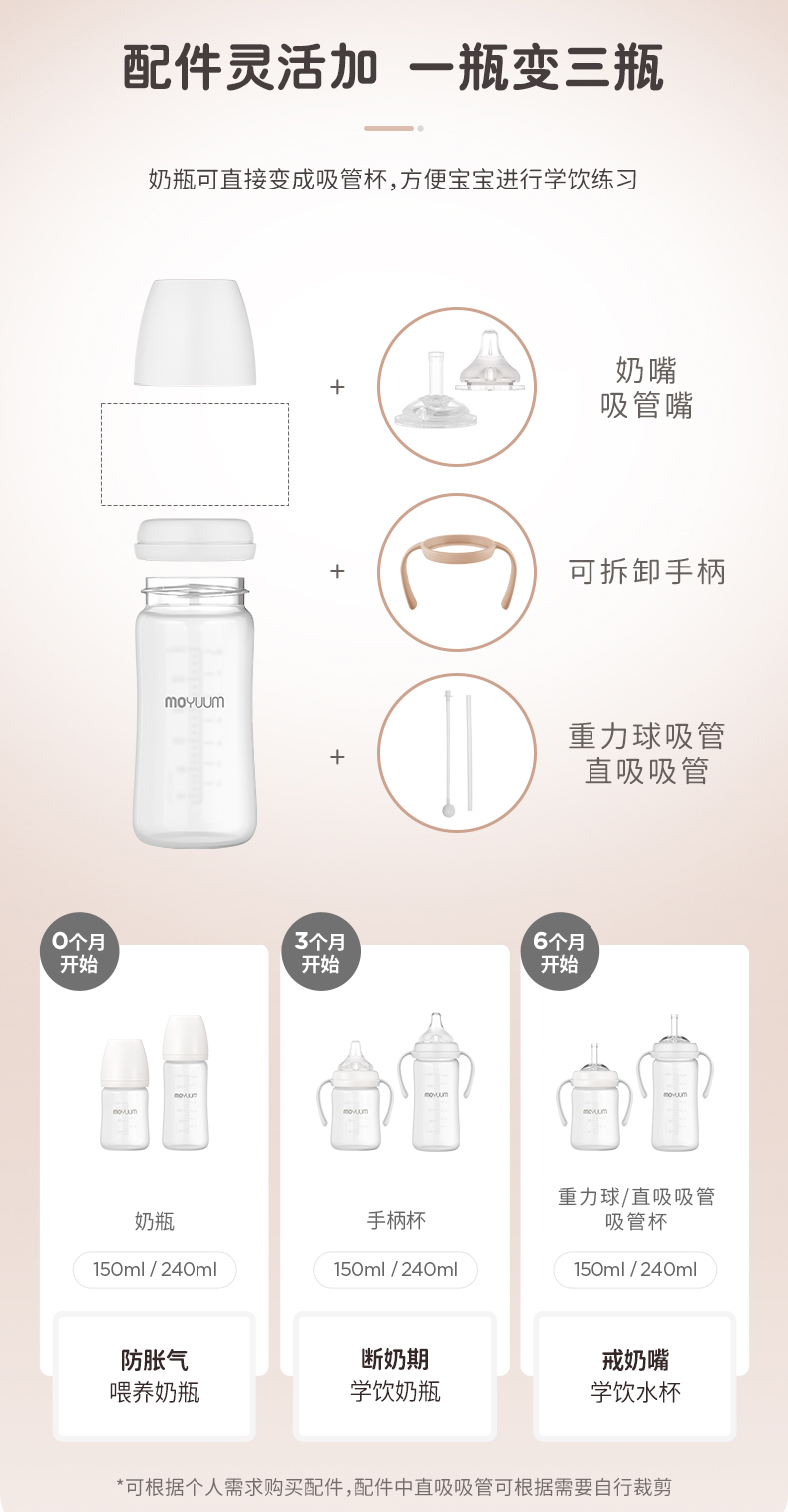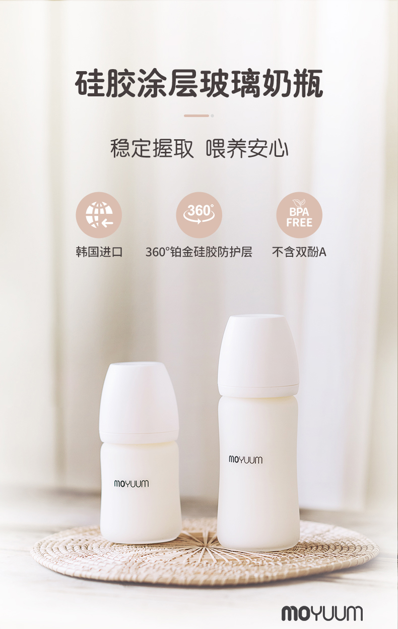 Moyuum玻璃奶瓶婴儿新生儿防胀气奶瓶0-36个月宝宝出生专用防呛