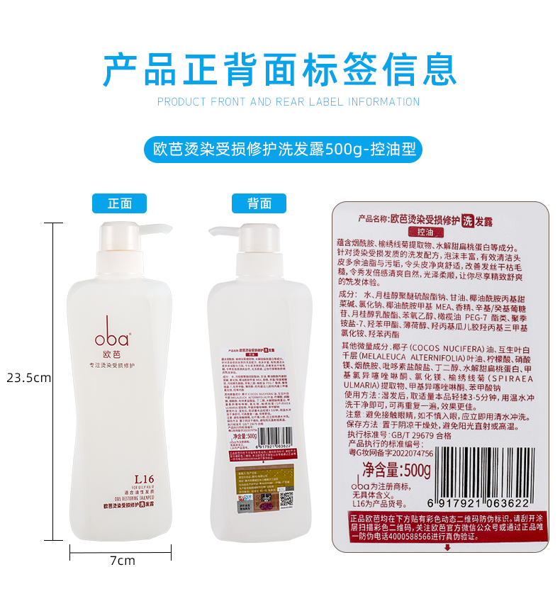 oba欧芭L16欧芭烫染受损修护洗护套装清爽无硅控油清爽蓬松-控油欧芭正品