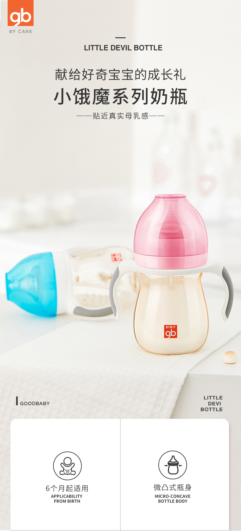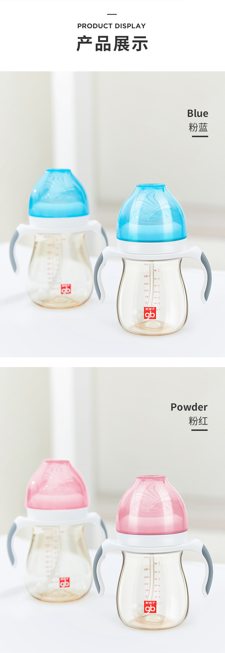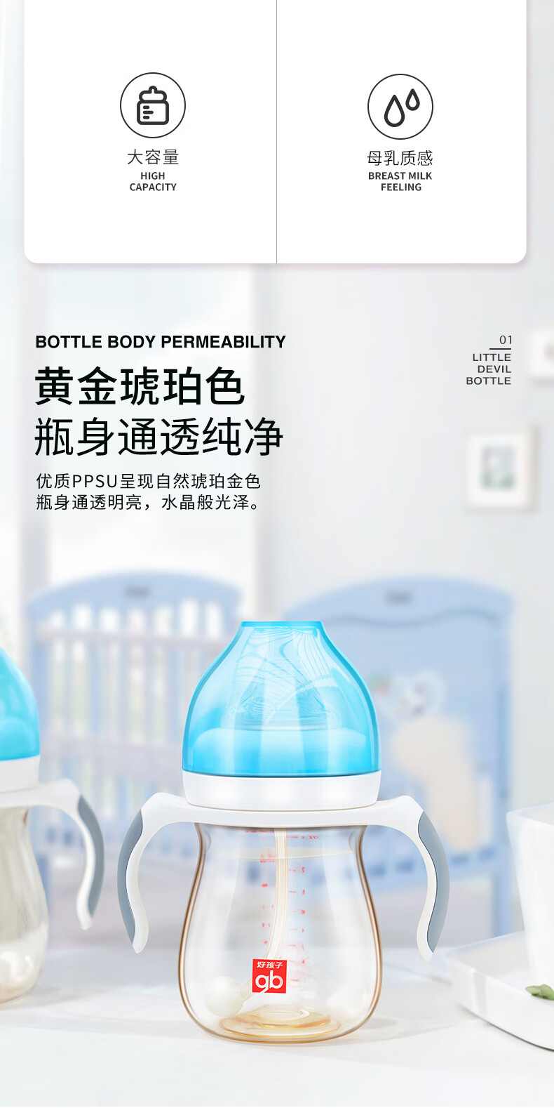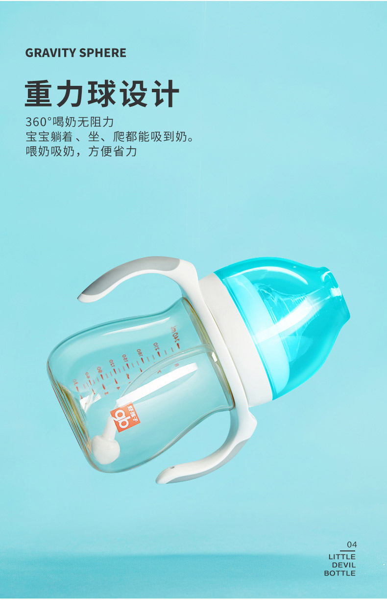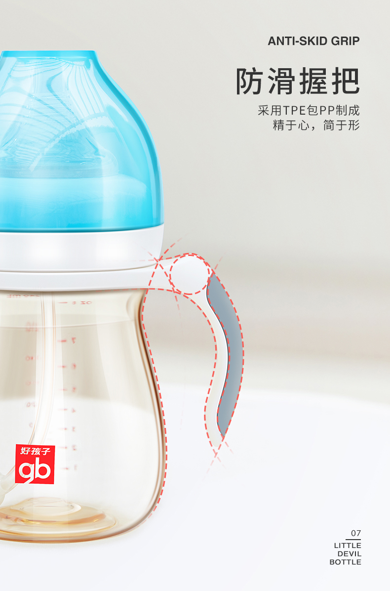 好孩子(gb)PPSU婴儿奶瓶宽口径奶瓶带手柄吸管小饿魔系列300ml 6个月+ 3834771