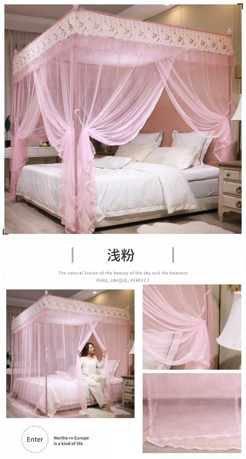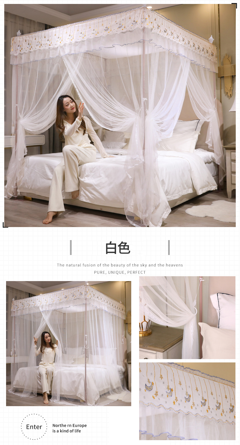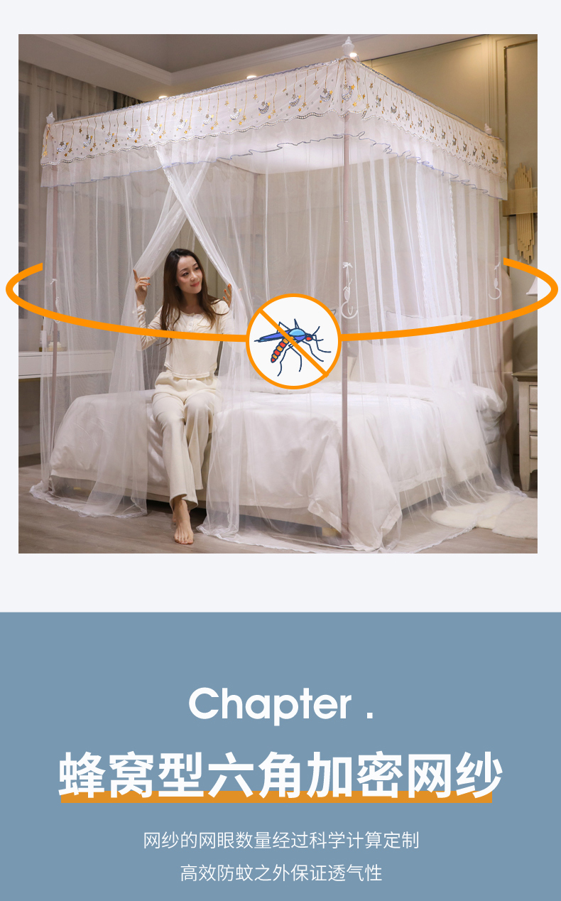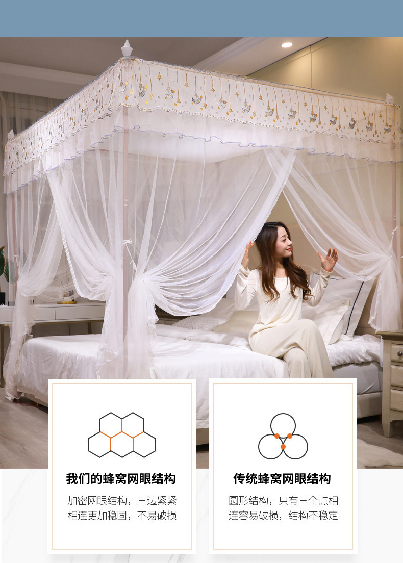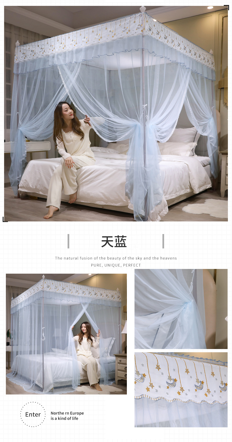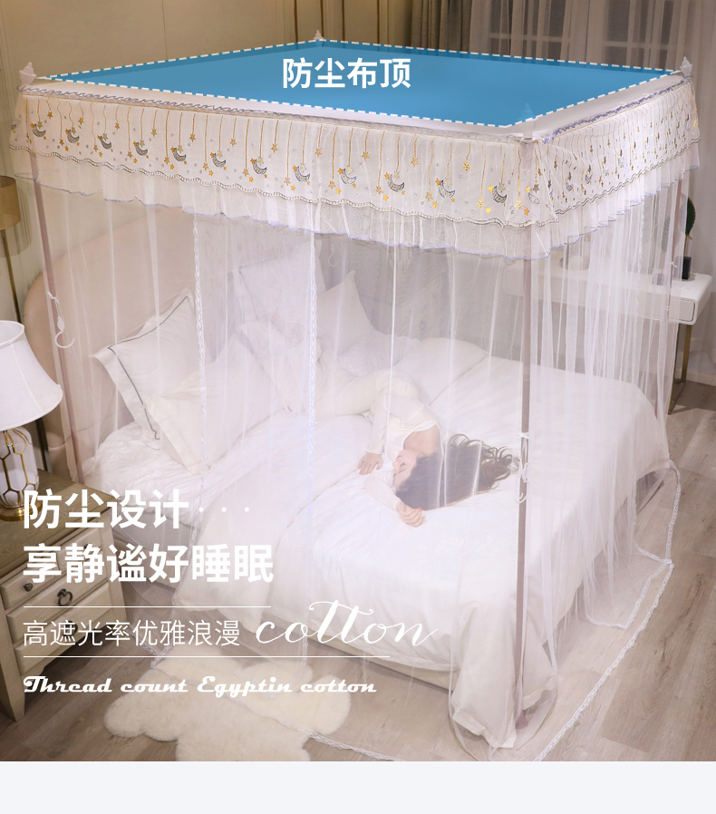 自然醒宫廷落地蚊帐家用1.5米1.8m/2.0m床纹账铝合金支架三开门公主风加密加厚防尘8899HH