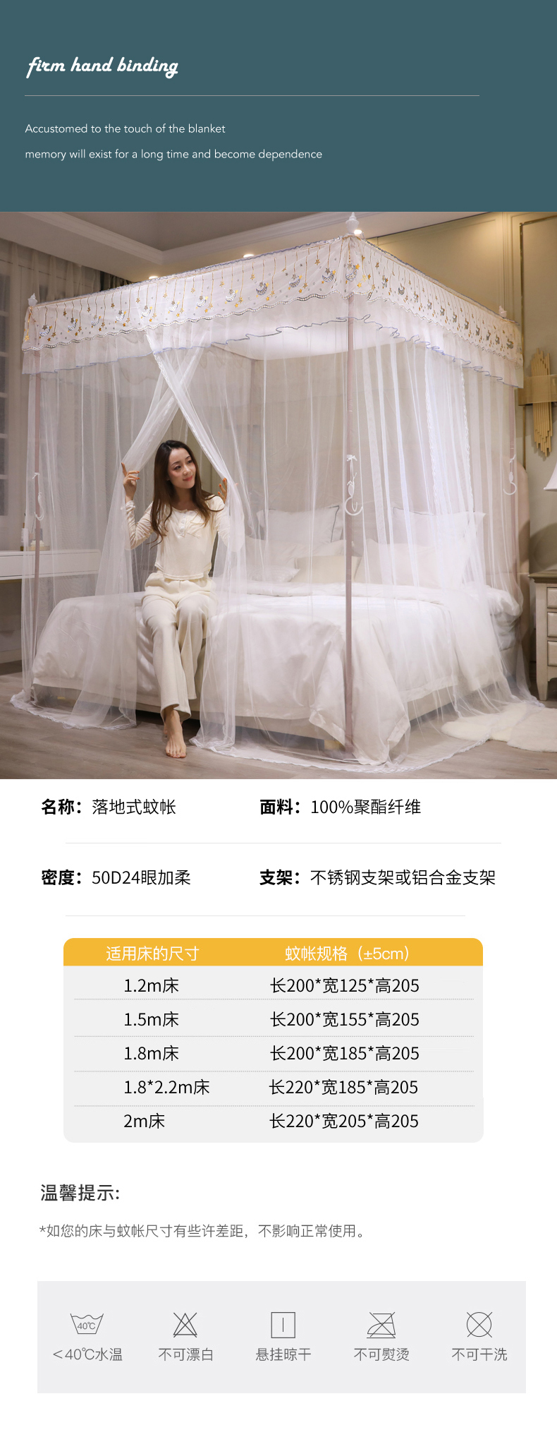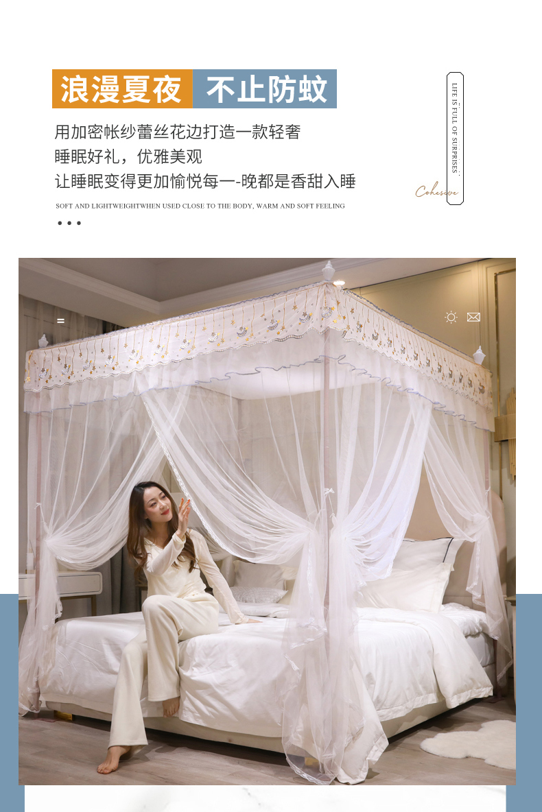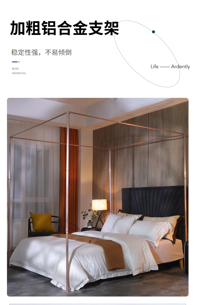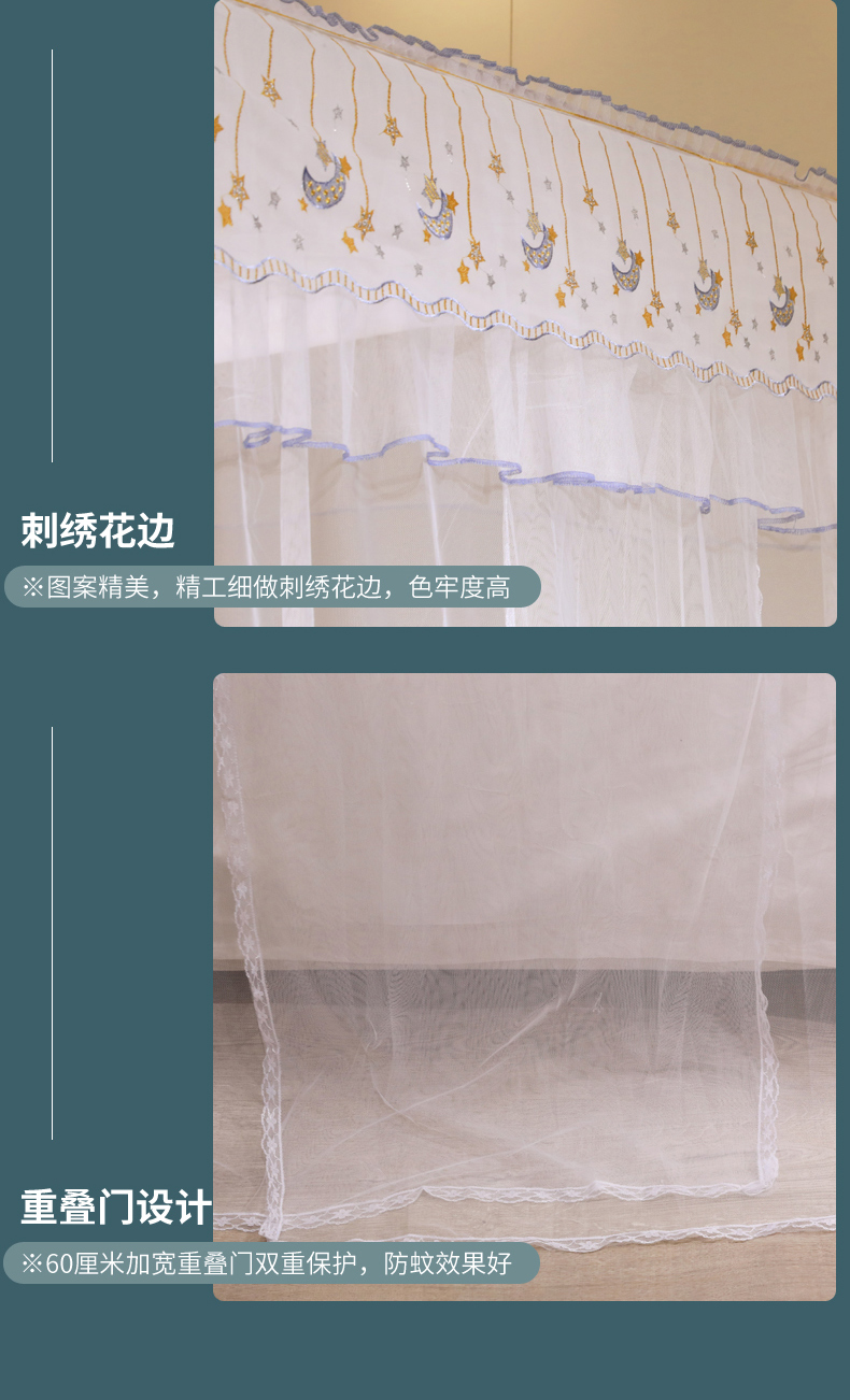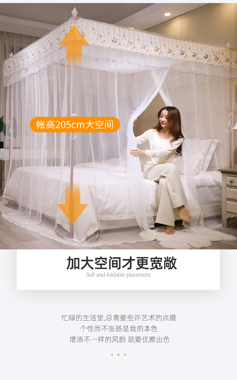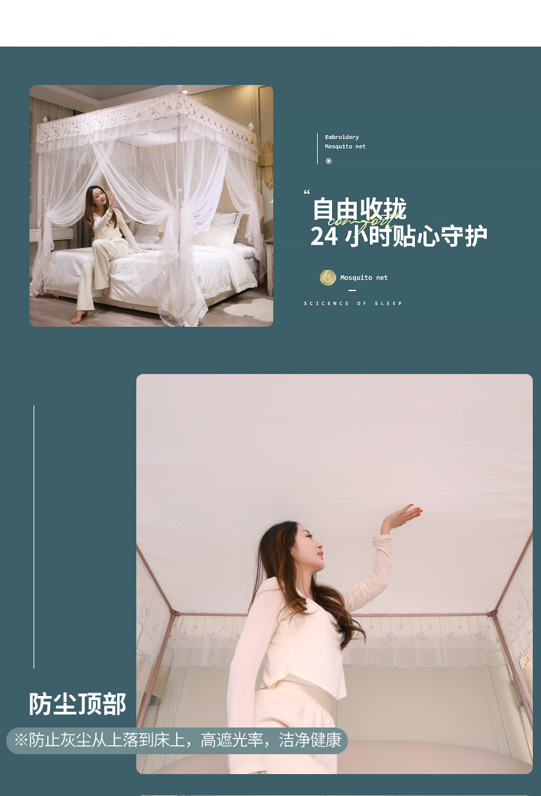 自然醒宫廷落地蚊帐家用1.5米1.8m/2.0m床纹账铝合金支架三开门公主风加密加厚防尘8899HH