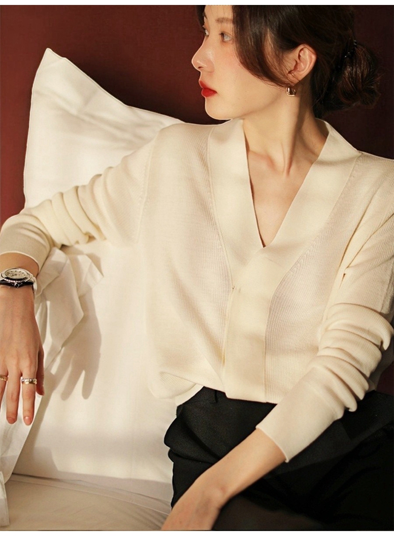2026春装新品时尚V领长袖单排扣针织开衫外套