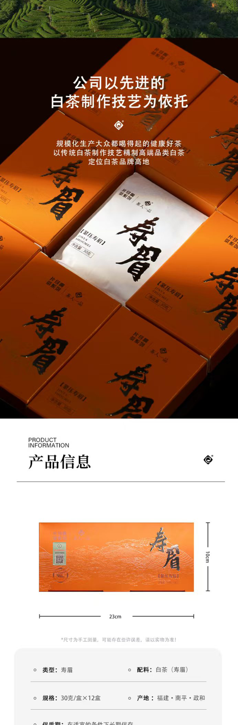 片仔癀茶系列-茶人一品 片仔癀寿眉360克盒装 茶汤杏黄 醇厚甘润