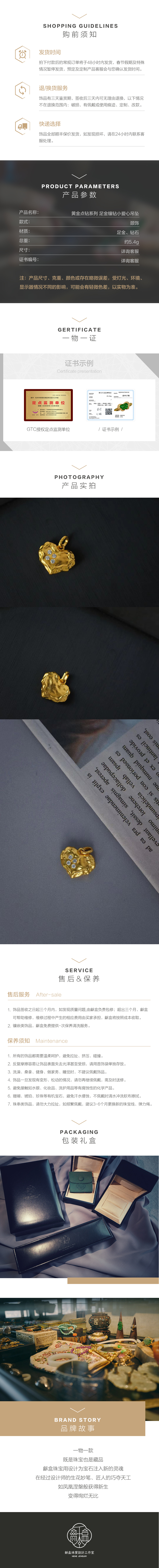 古法黄金点钻系列 足金镶钻爱心小吊坠
