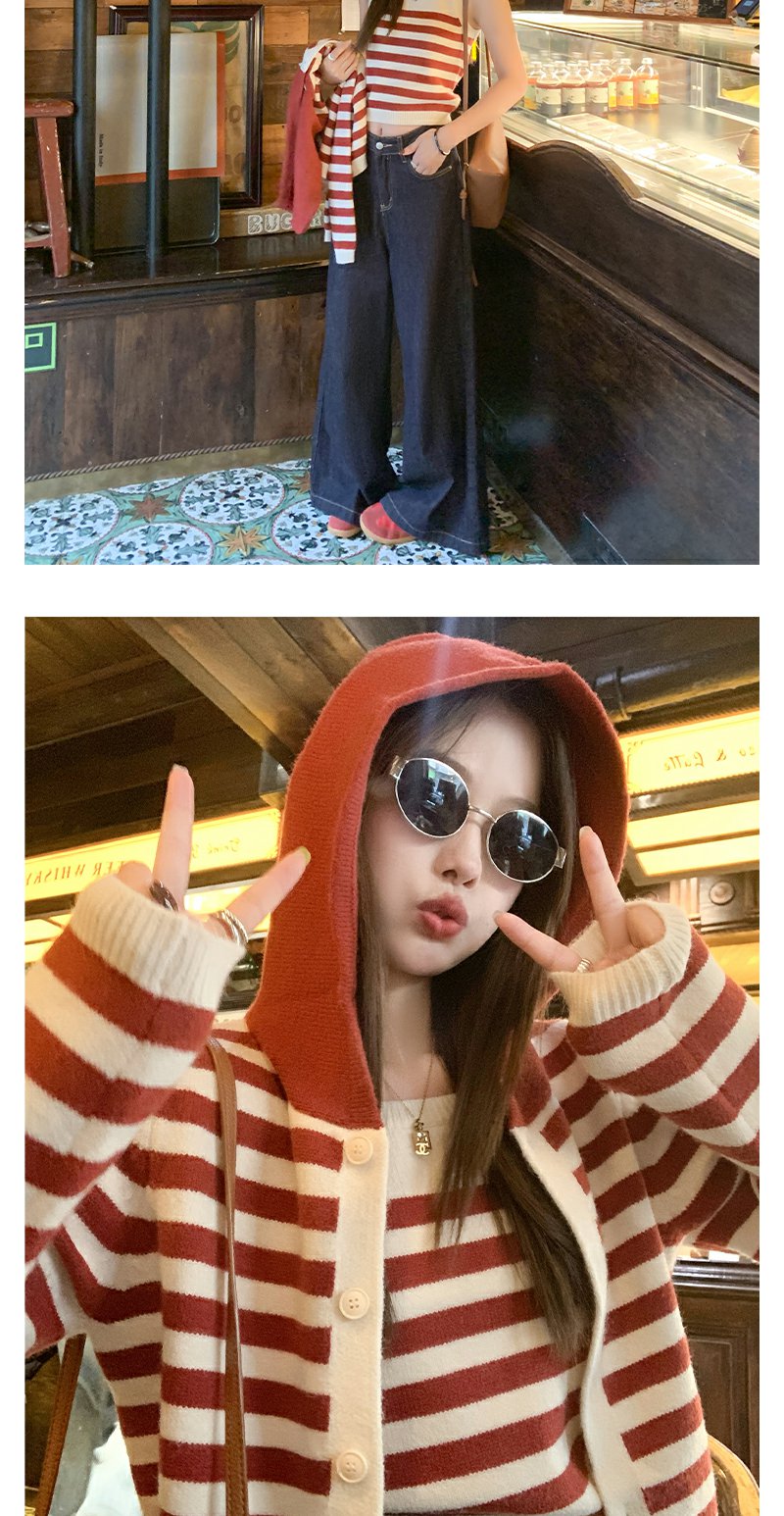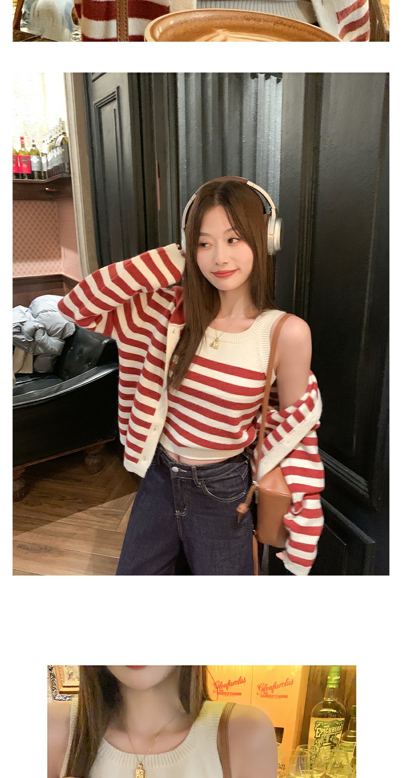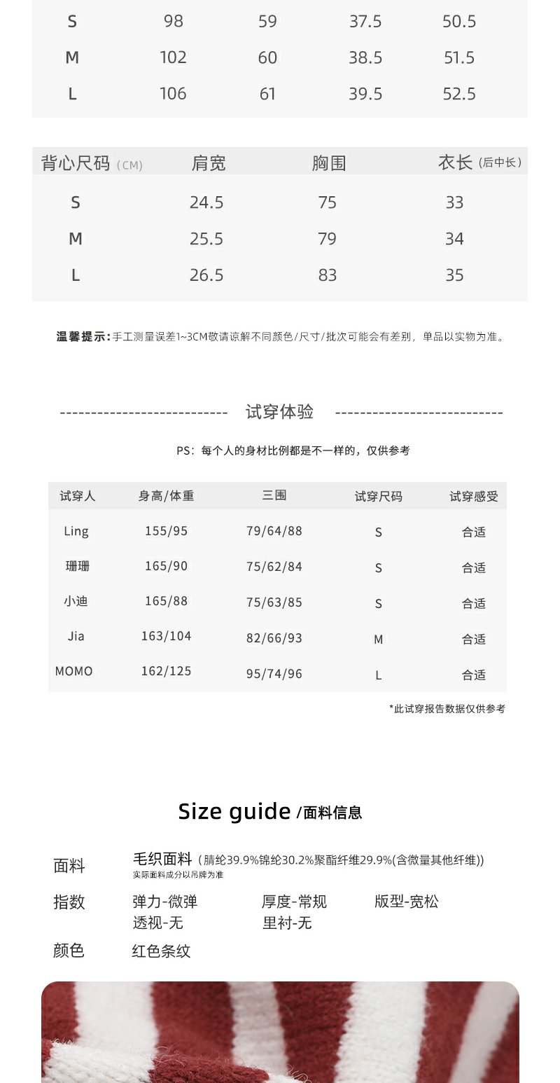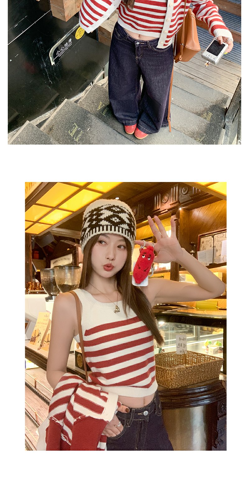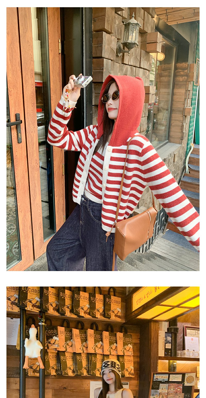 <曾小咸推荐>韩系红色条纹针织开衫女秋冬连帽毛衣修身内搭背心上衣套装