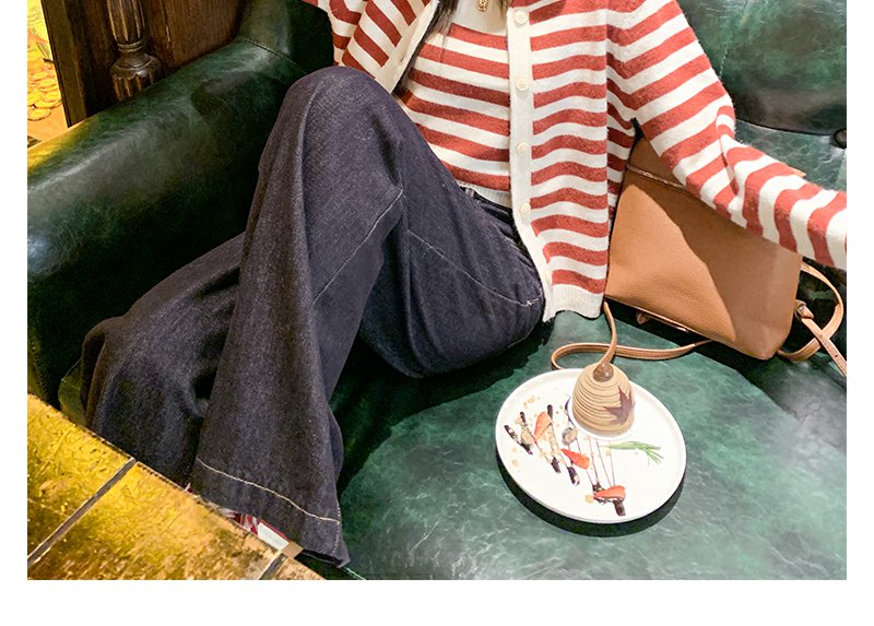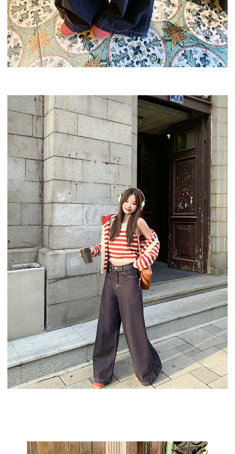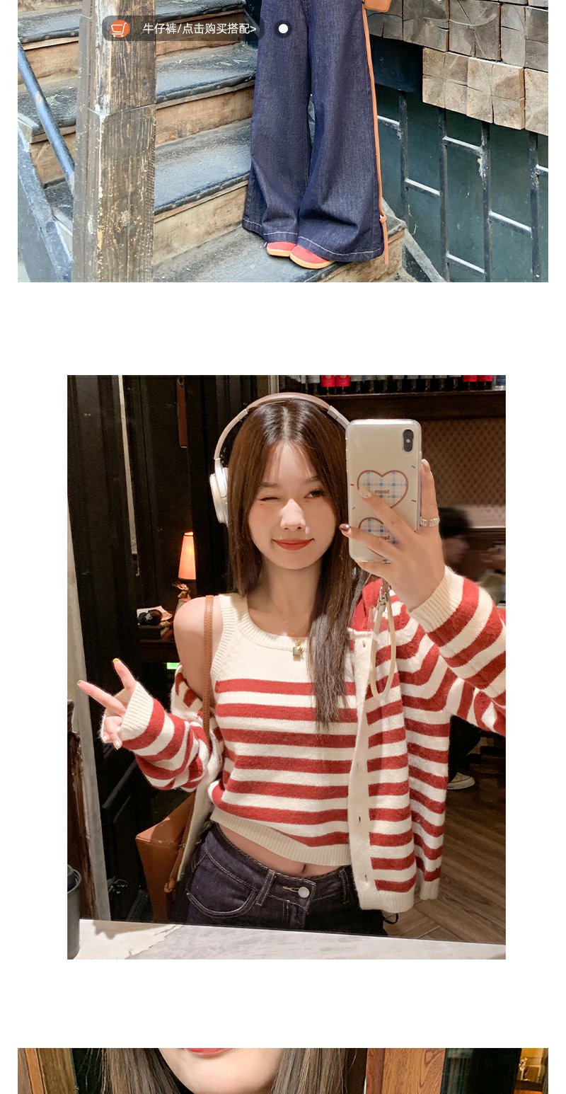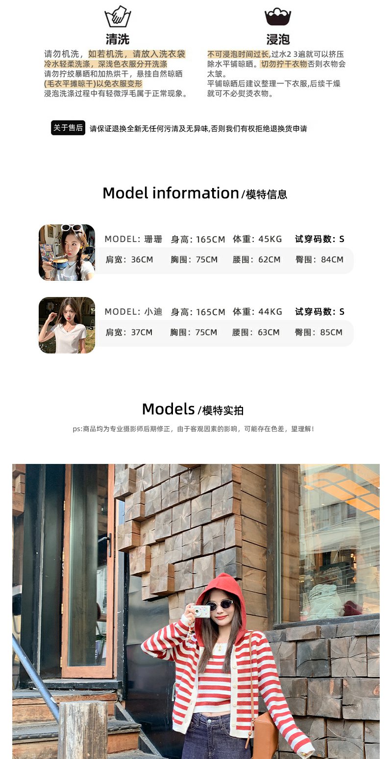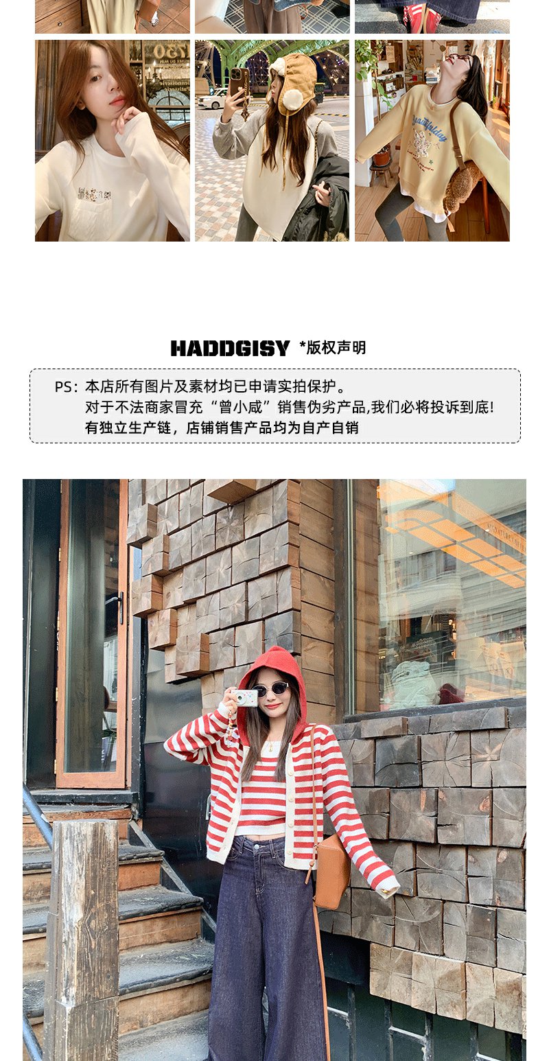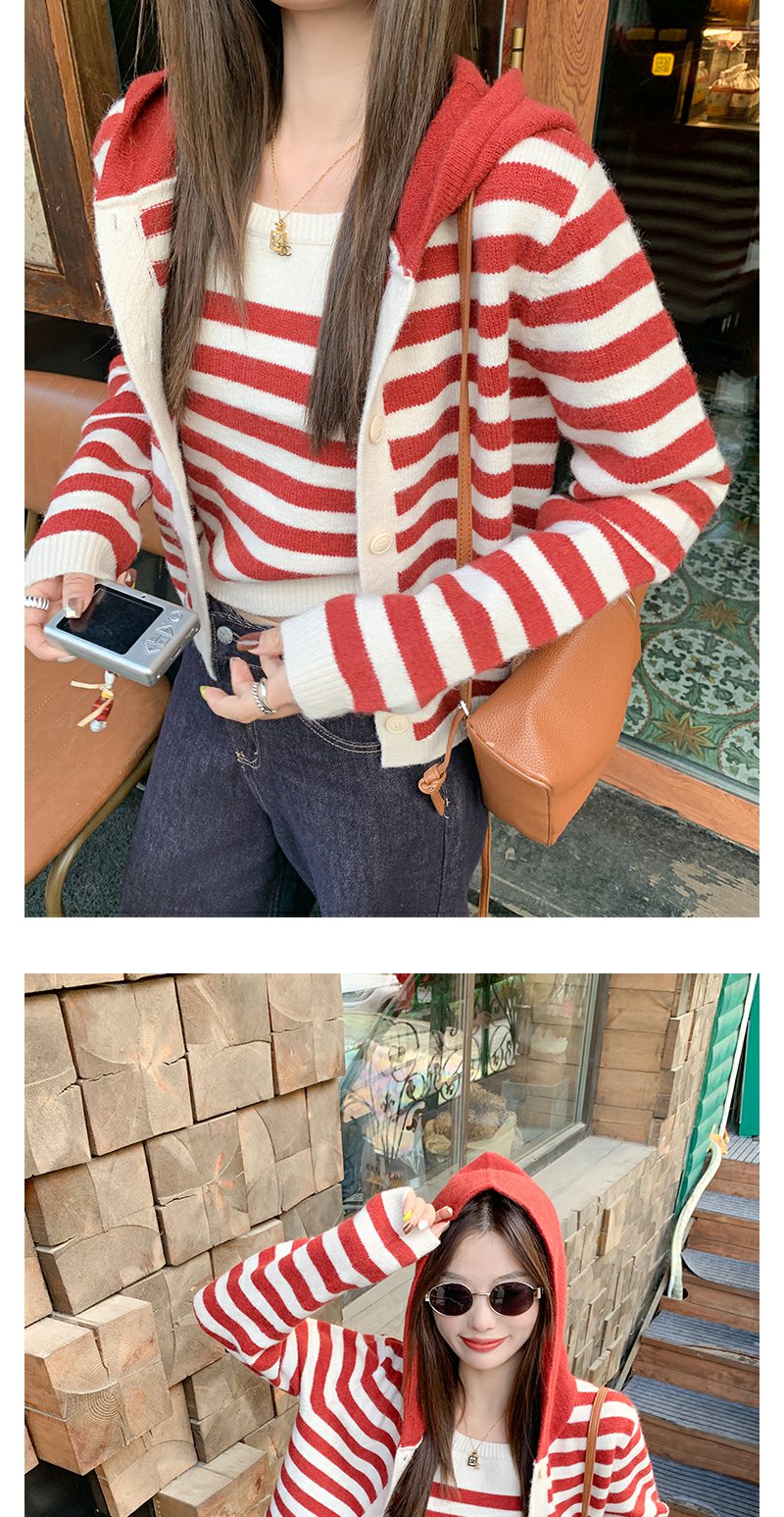 <曾小咸推荐>韩系红色条纹针织开衫女秋冬连帽毛衣修身内搭背心上衣套装