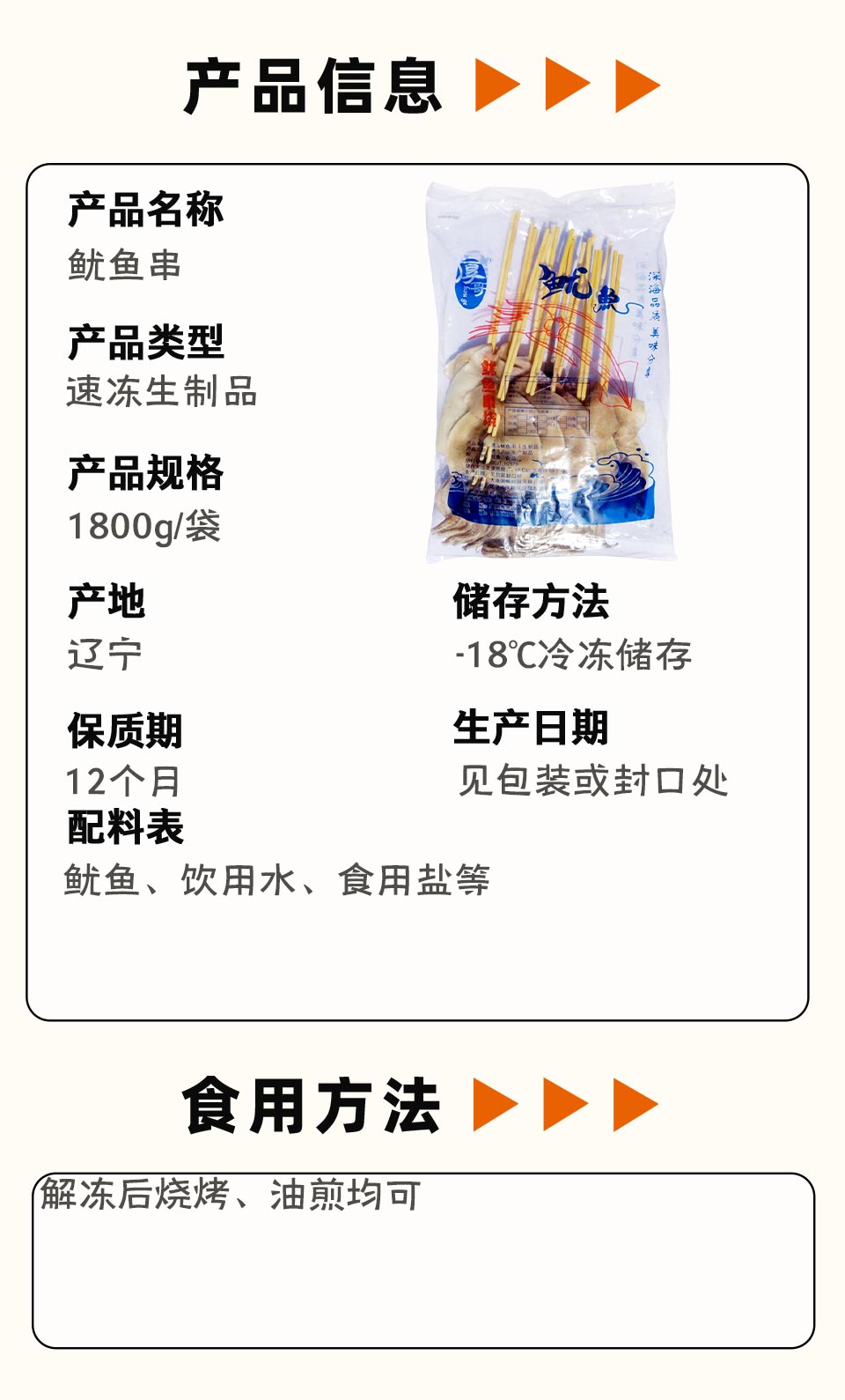 25J厚哥鱿鱼串1800g/袋(10串)180g/串 4袋/件