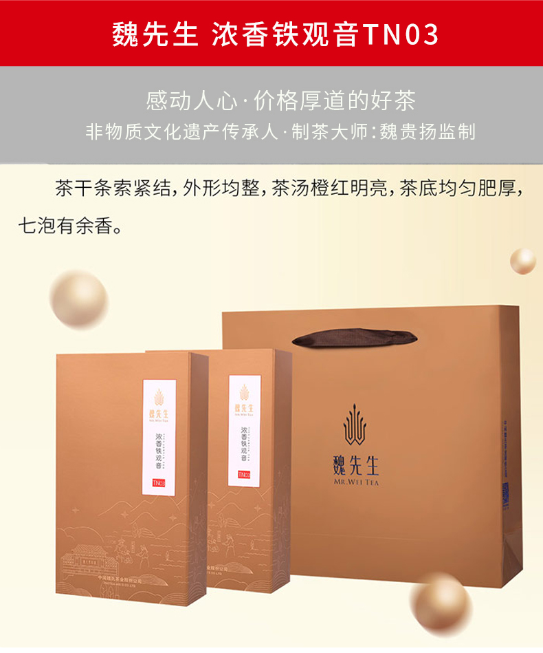 魏先生TN03 轻火炭焙浓香安溪铁观音 茶叶250克/盒