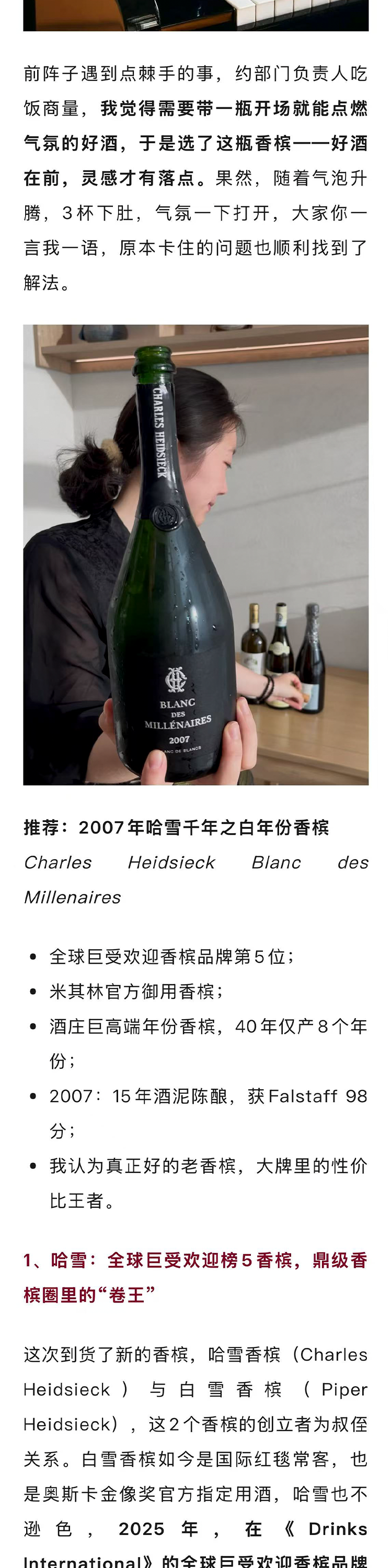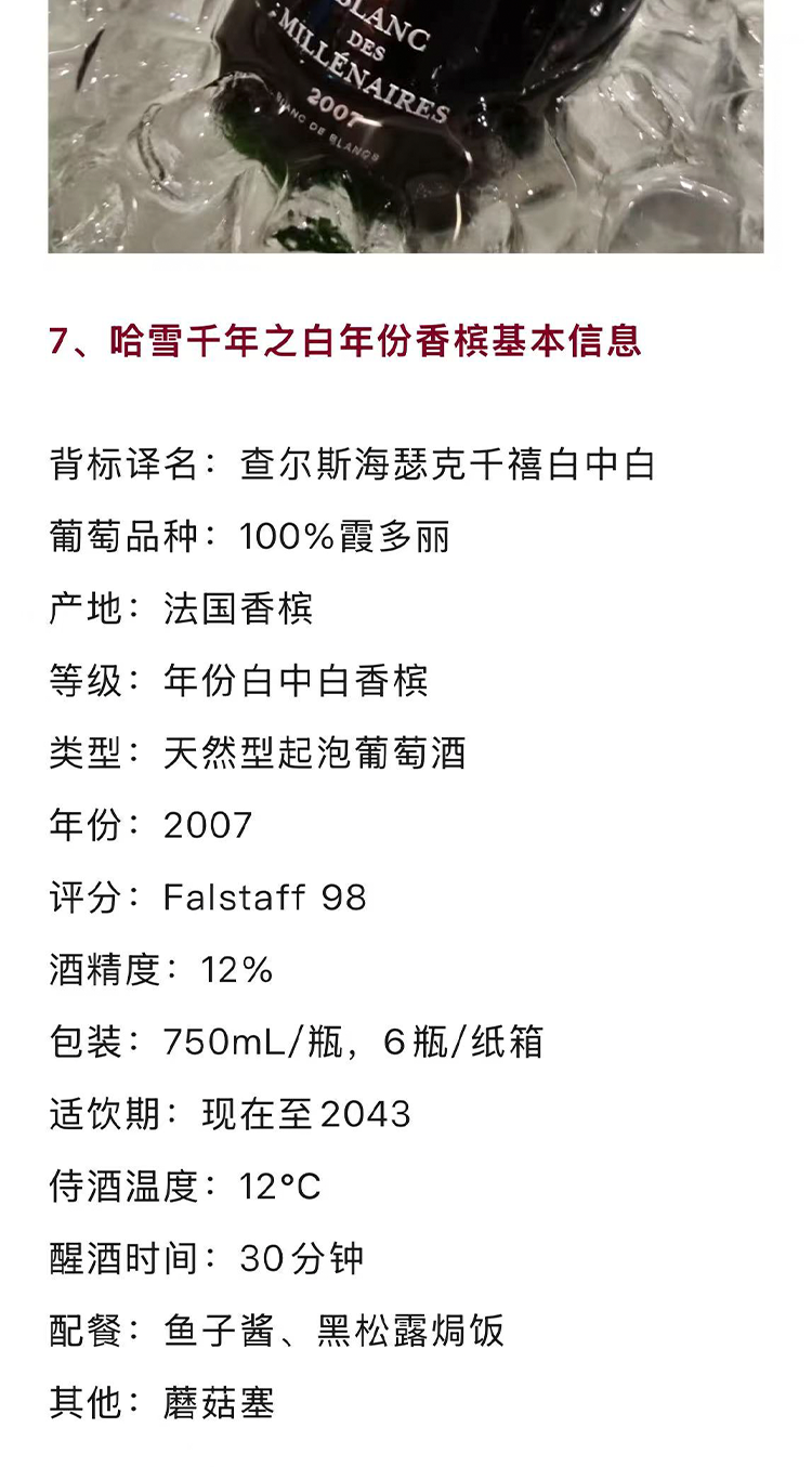 【全球5大香槟】法国2007年哈雪千年之白年份白中白香槟