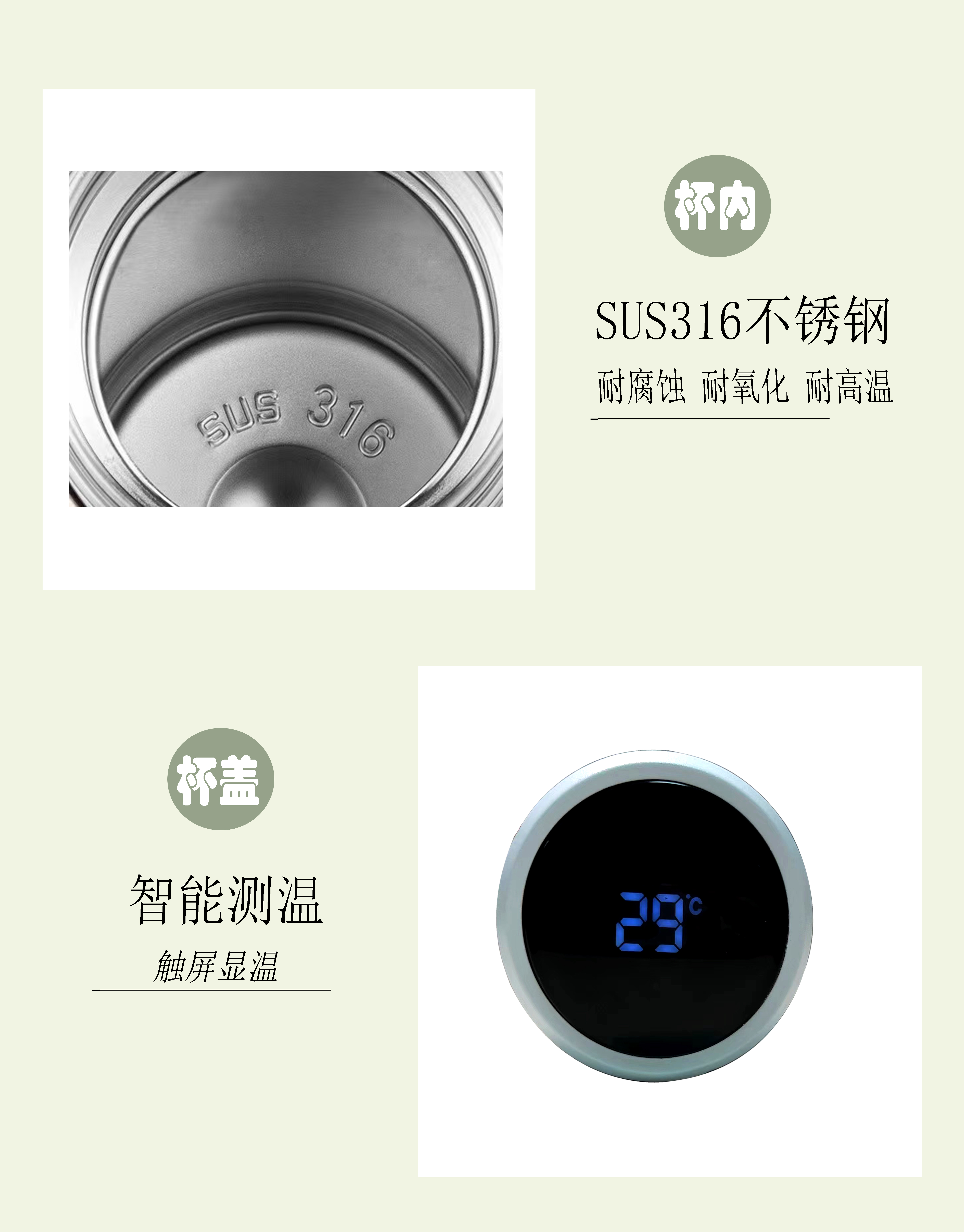 《胜战》智能显温保温杯 316不锈钢内胆 独立茶仓 茶水分离 一触显温 杜绝隐患