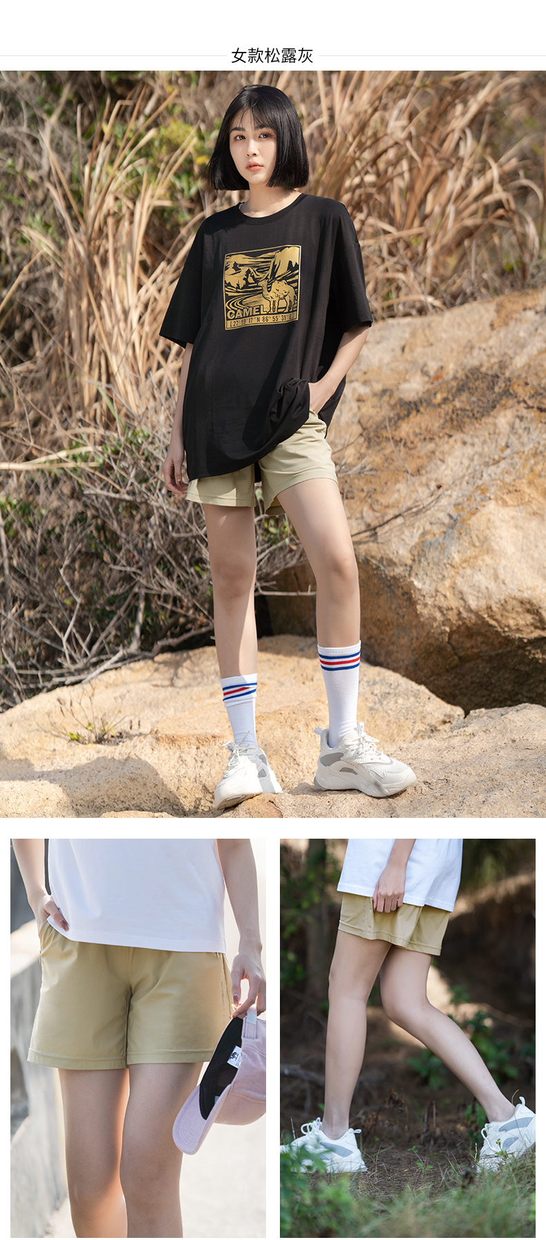 骆驼户外速干裤男女同款2025春夏新款短裤凉爽透气时尚潮流宽松休闲裤男 7662251001_7662252001