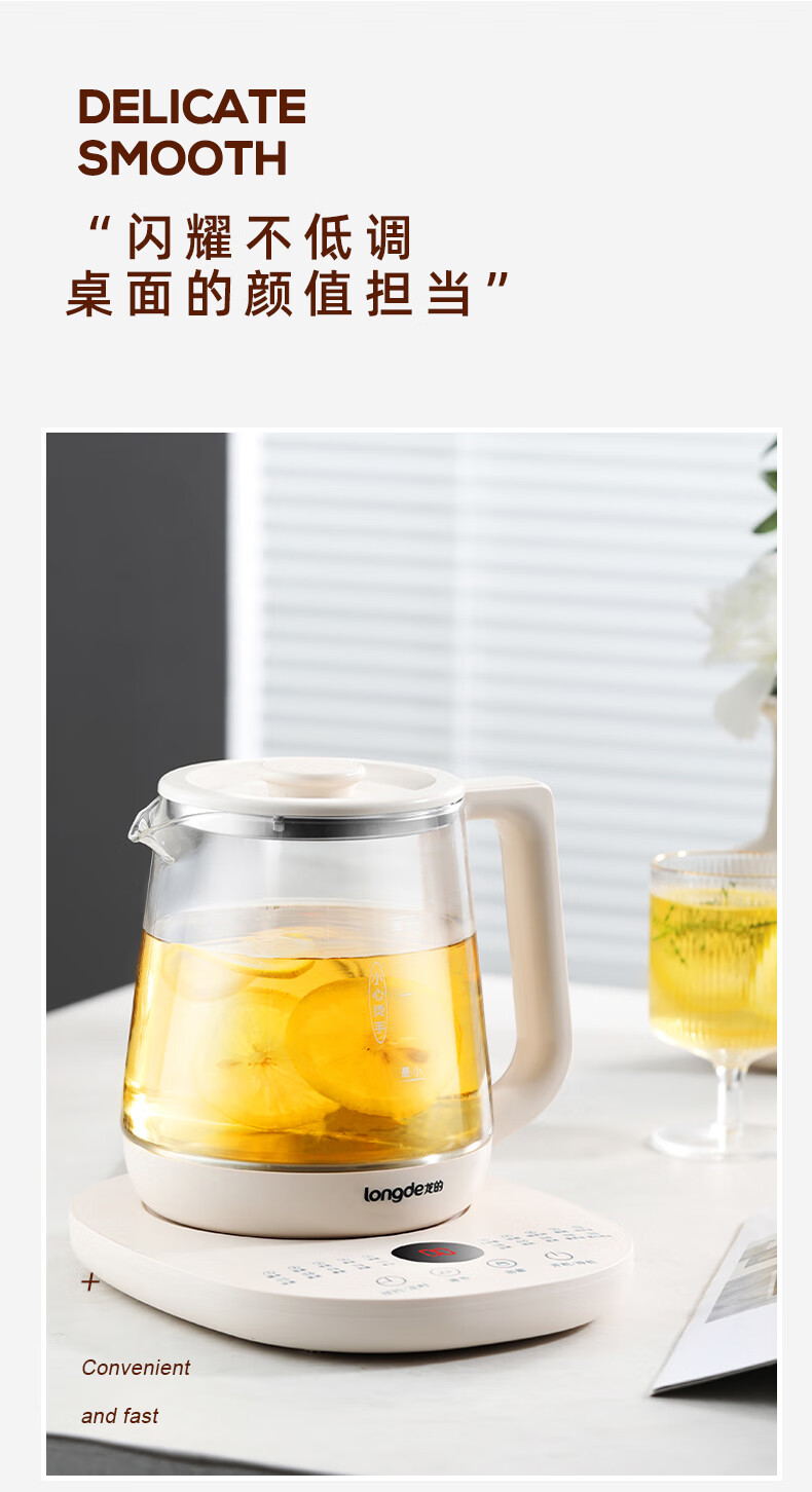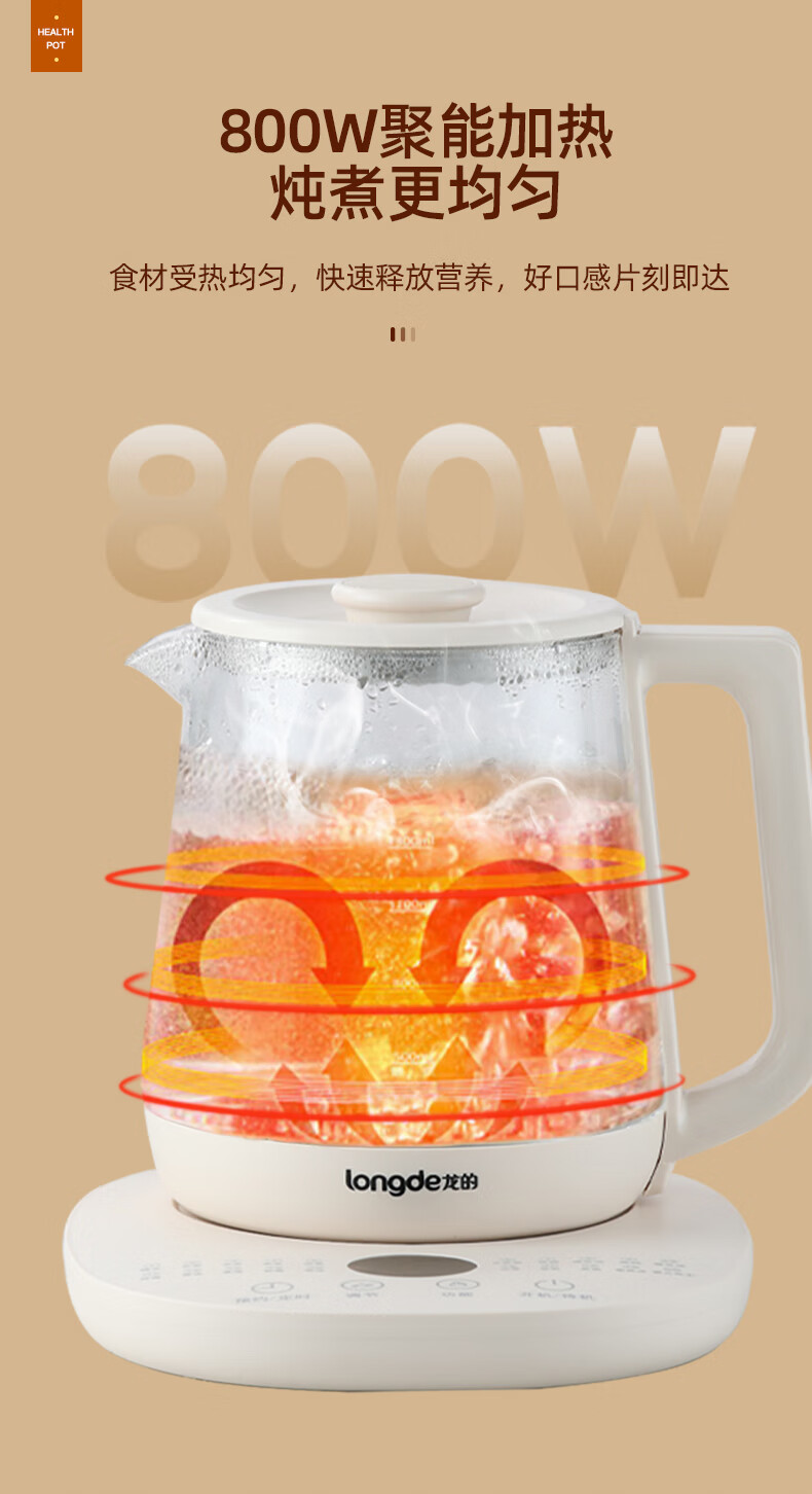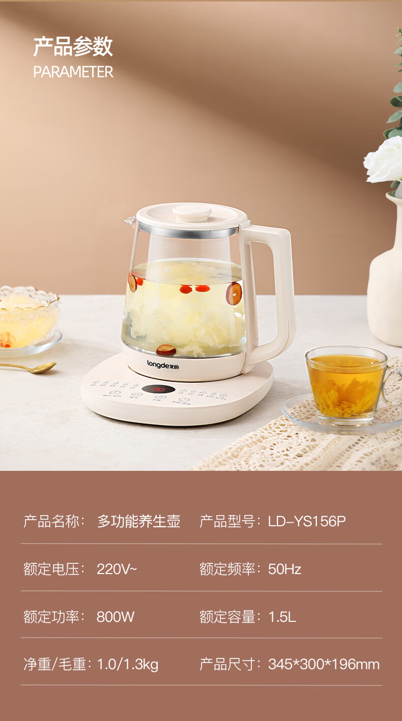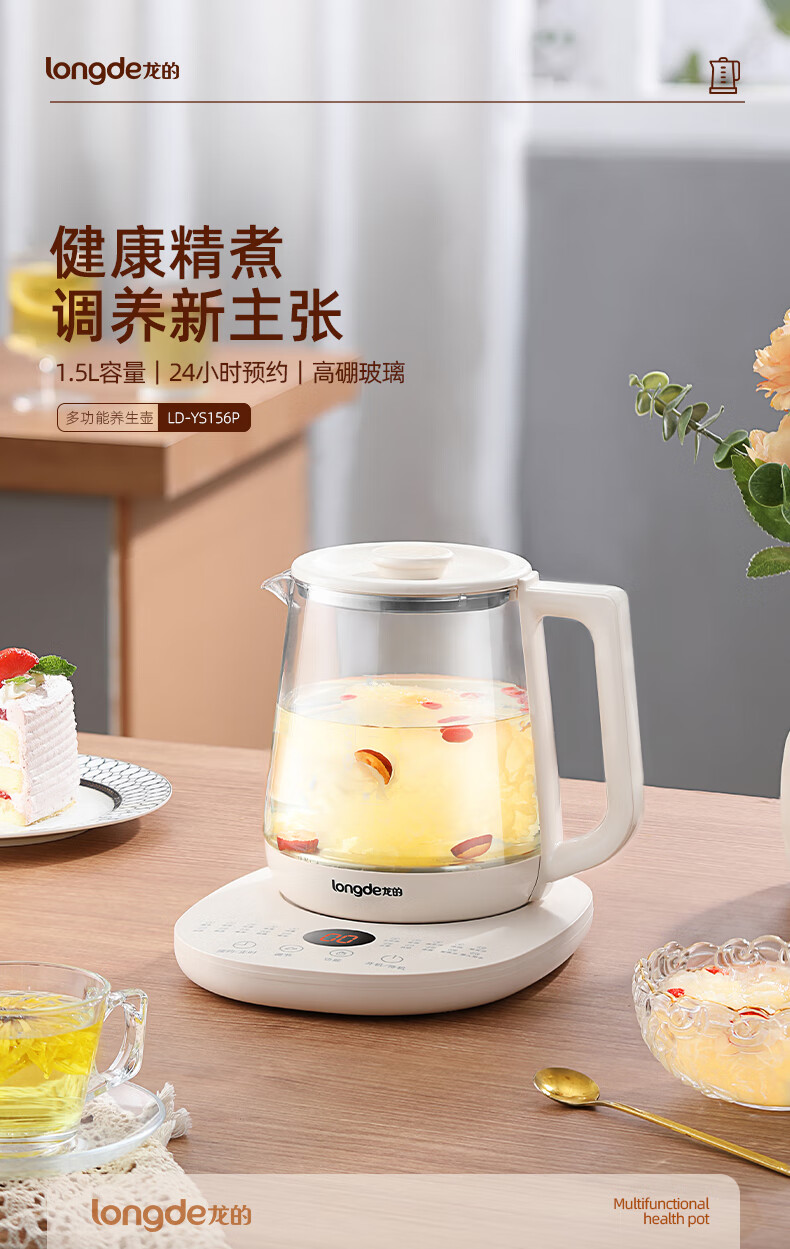 【小家电】龙的longde 养生壶家用多功能燕窝壶养身茶壶 全自动加厚玻璃煮茶壶 LD-YS156P HF