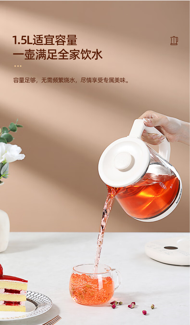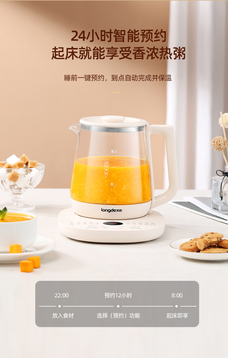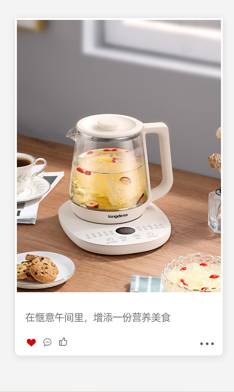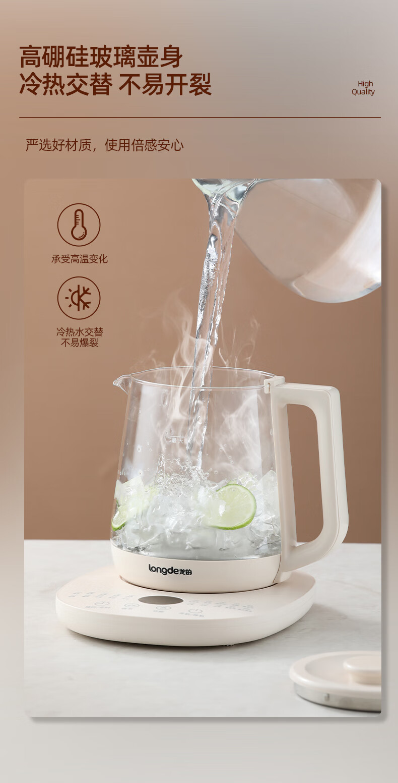 【小家电】龙的longde 养生壶家用多功能燕窝壶养身茶壶 全自动加厚玻璃煮茶壶 LD-YS156P HF