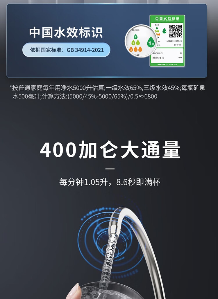 【门店同款】碧水源净水器家用直饮纳滤净水机P6保留矿物质400G厨下式净水器可出天然矿泉水的净水机