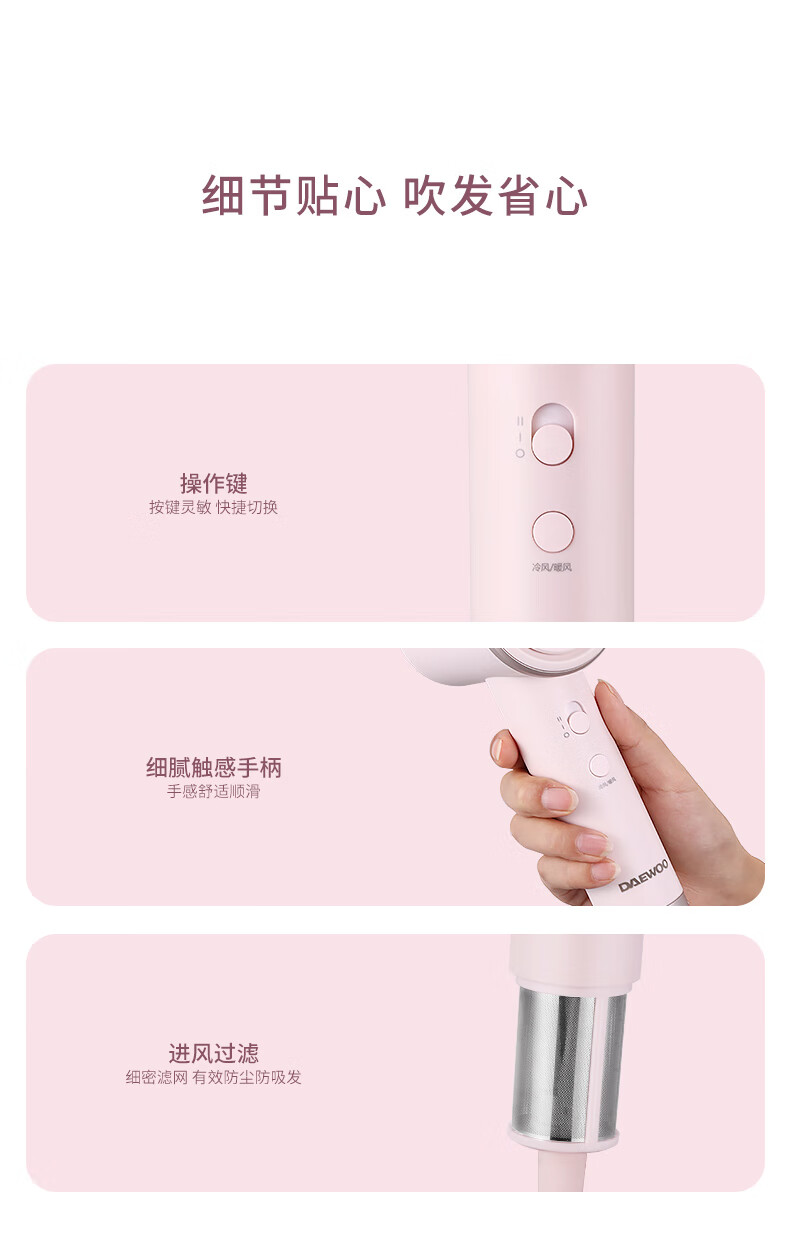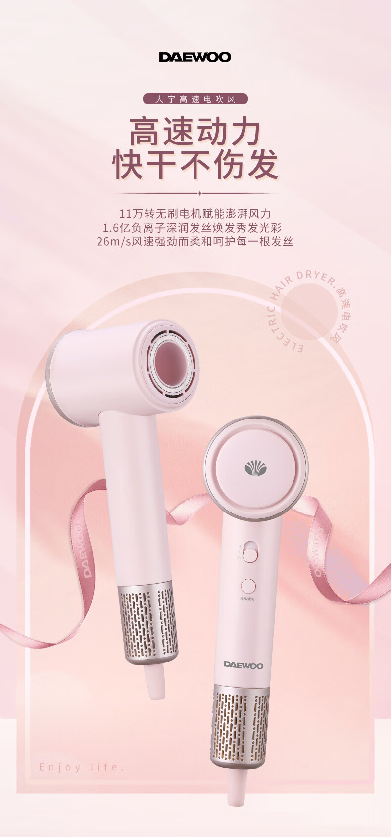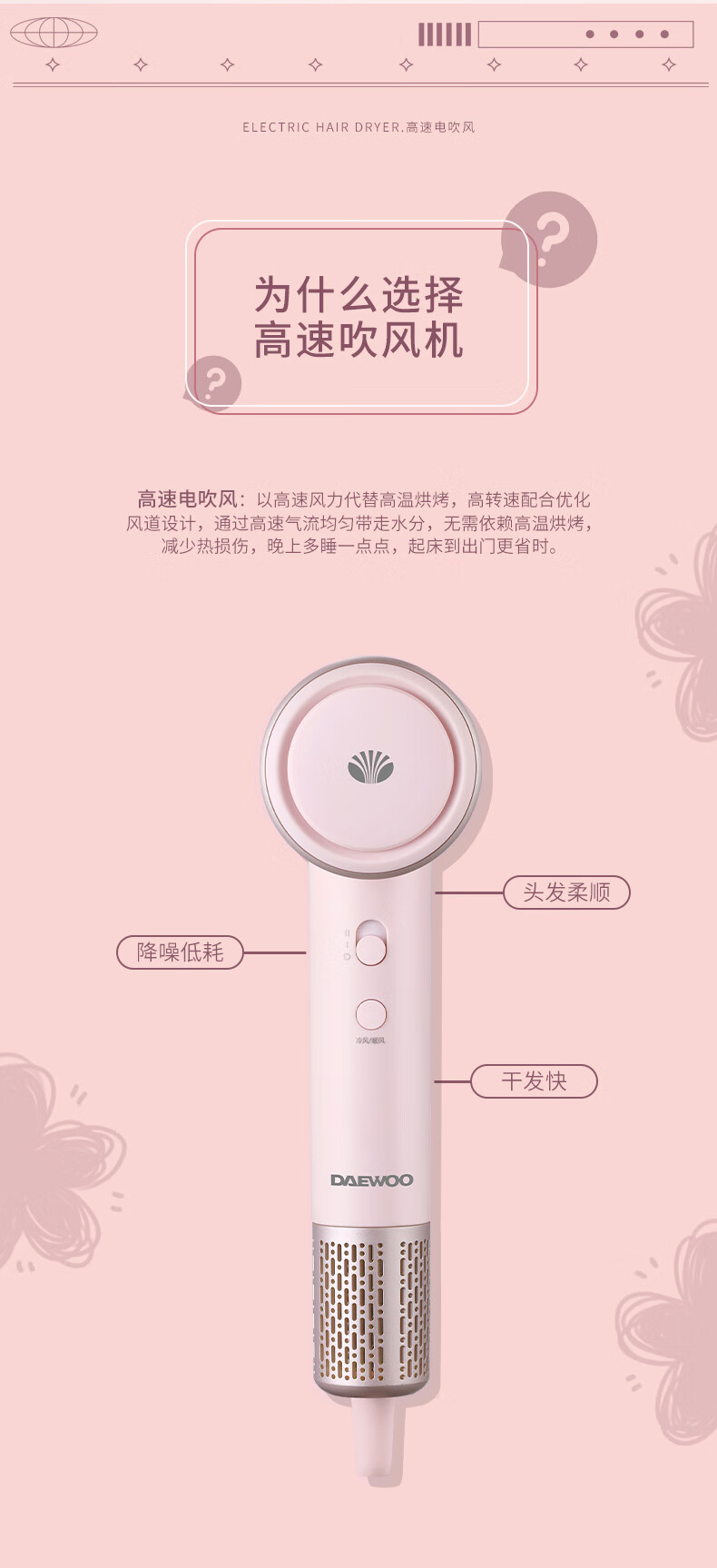 【多样屋专柜】大宇家用大功率电吹风 冷热护发大功率负离子速干风筒高速电吹风1500W