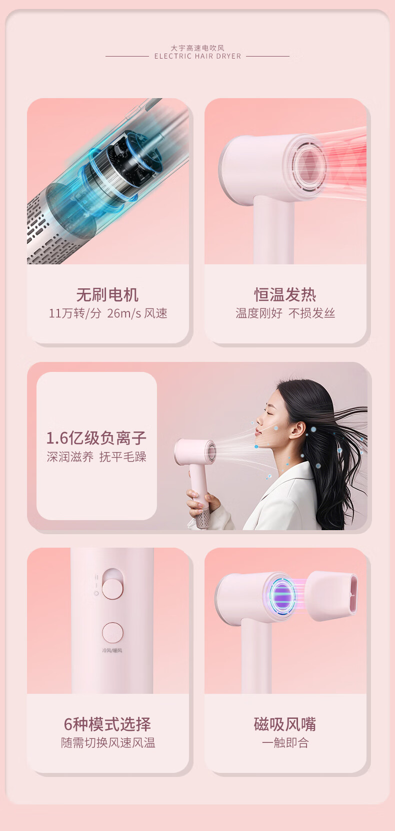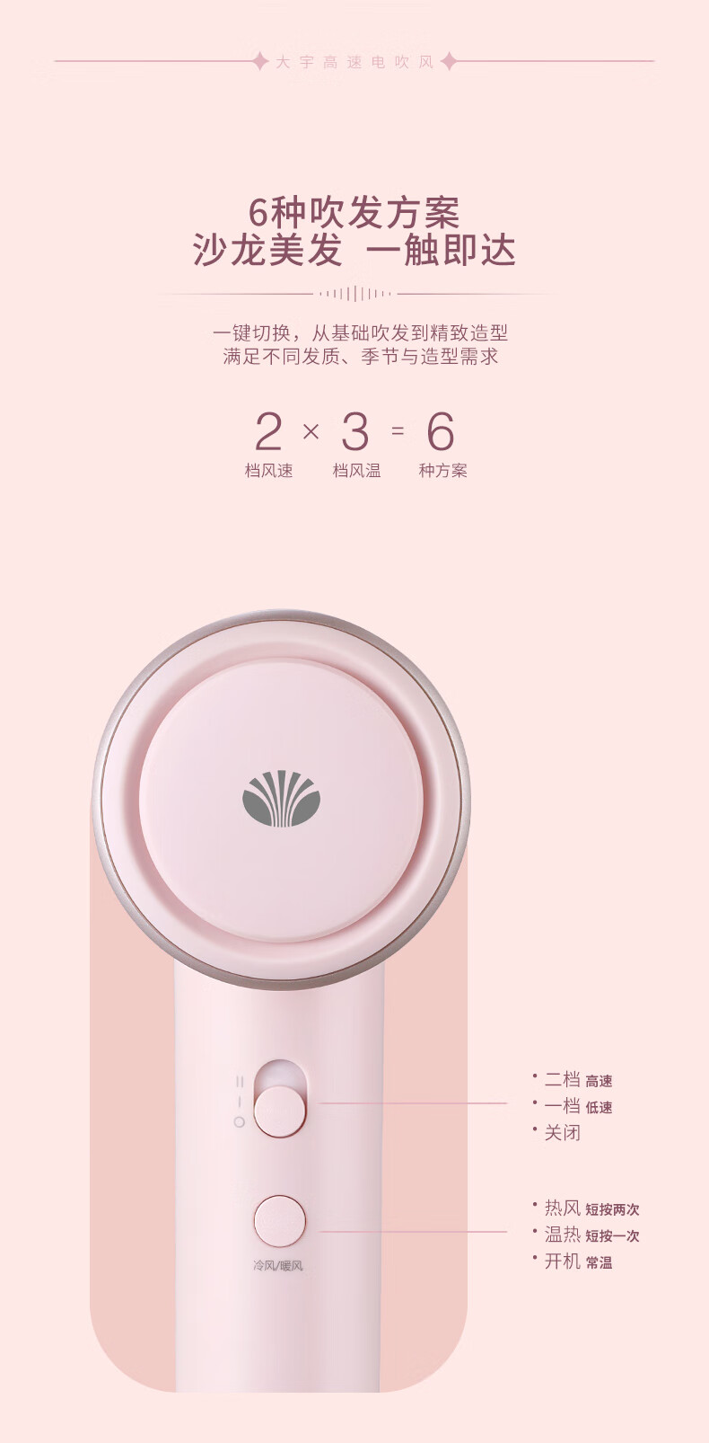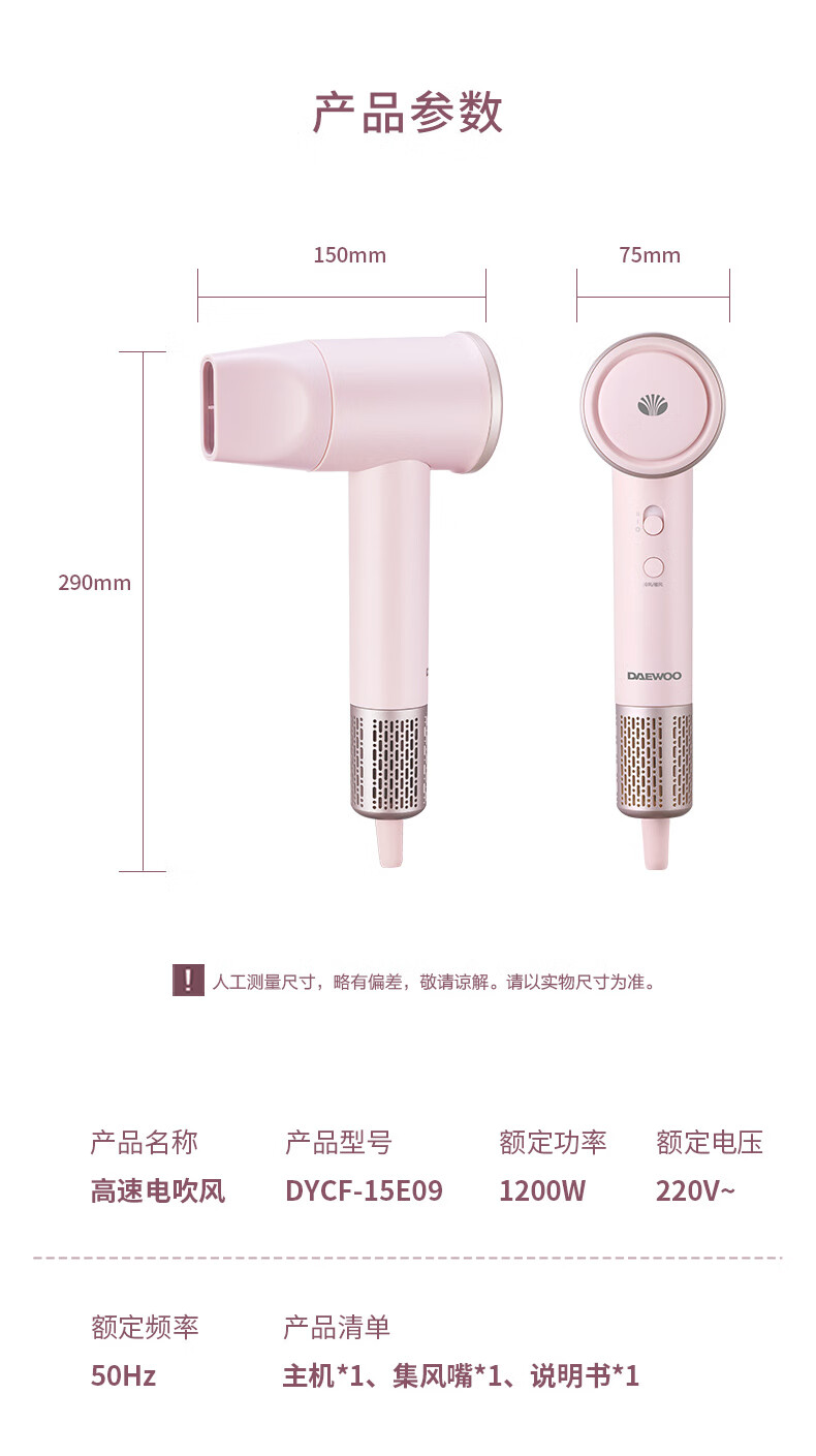 【多样屋专柜】大宇家用大功率电吹风 冷热护发大功率负离子速干风筒高速电吹风1500W