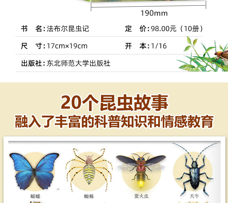 法布尔昆虫记注音版儿童绘本故事6-12岁全集科普启蒙少儿百科全书