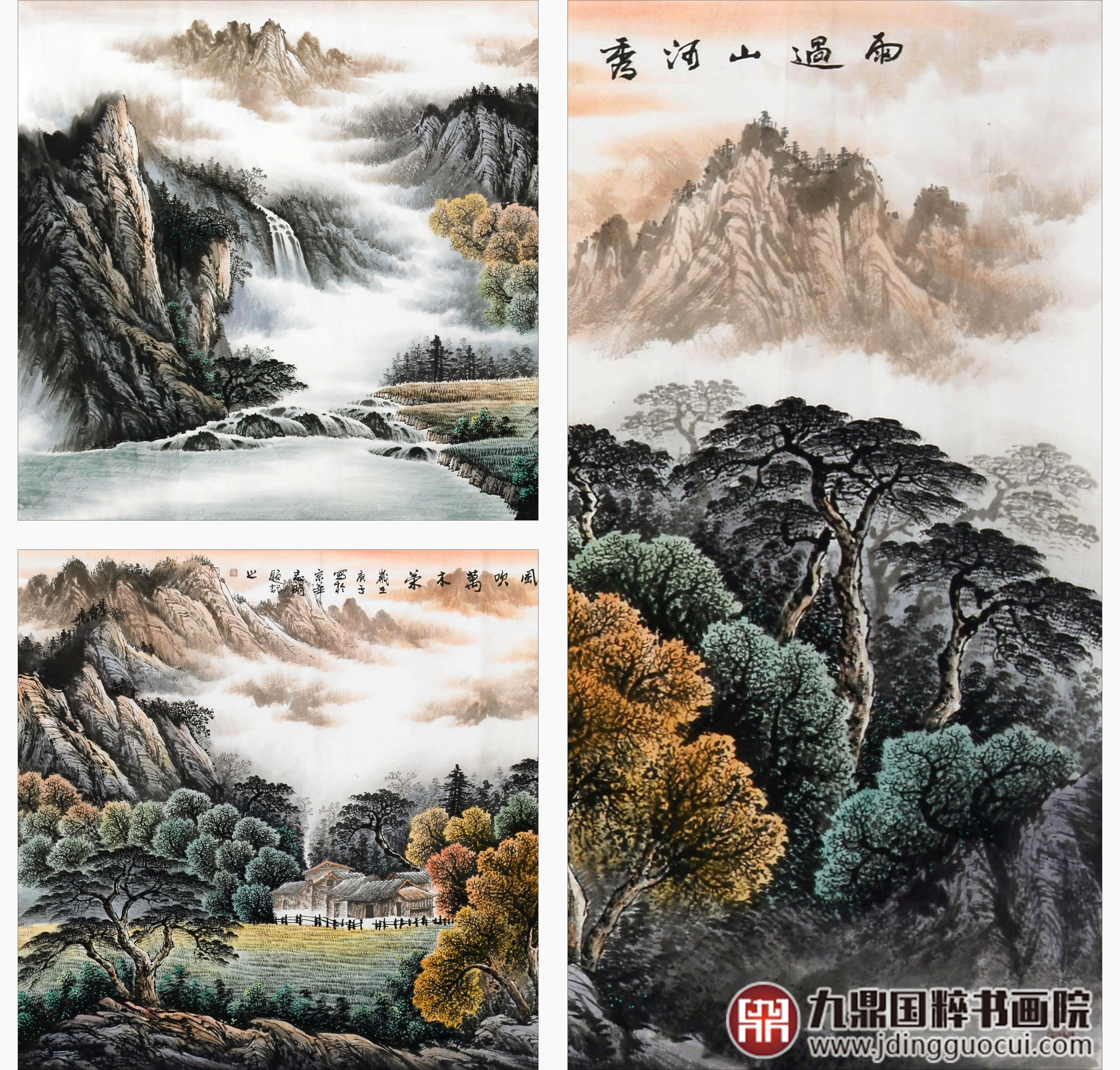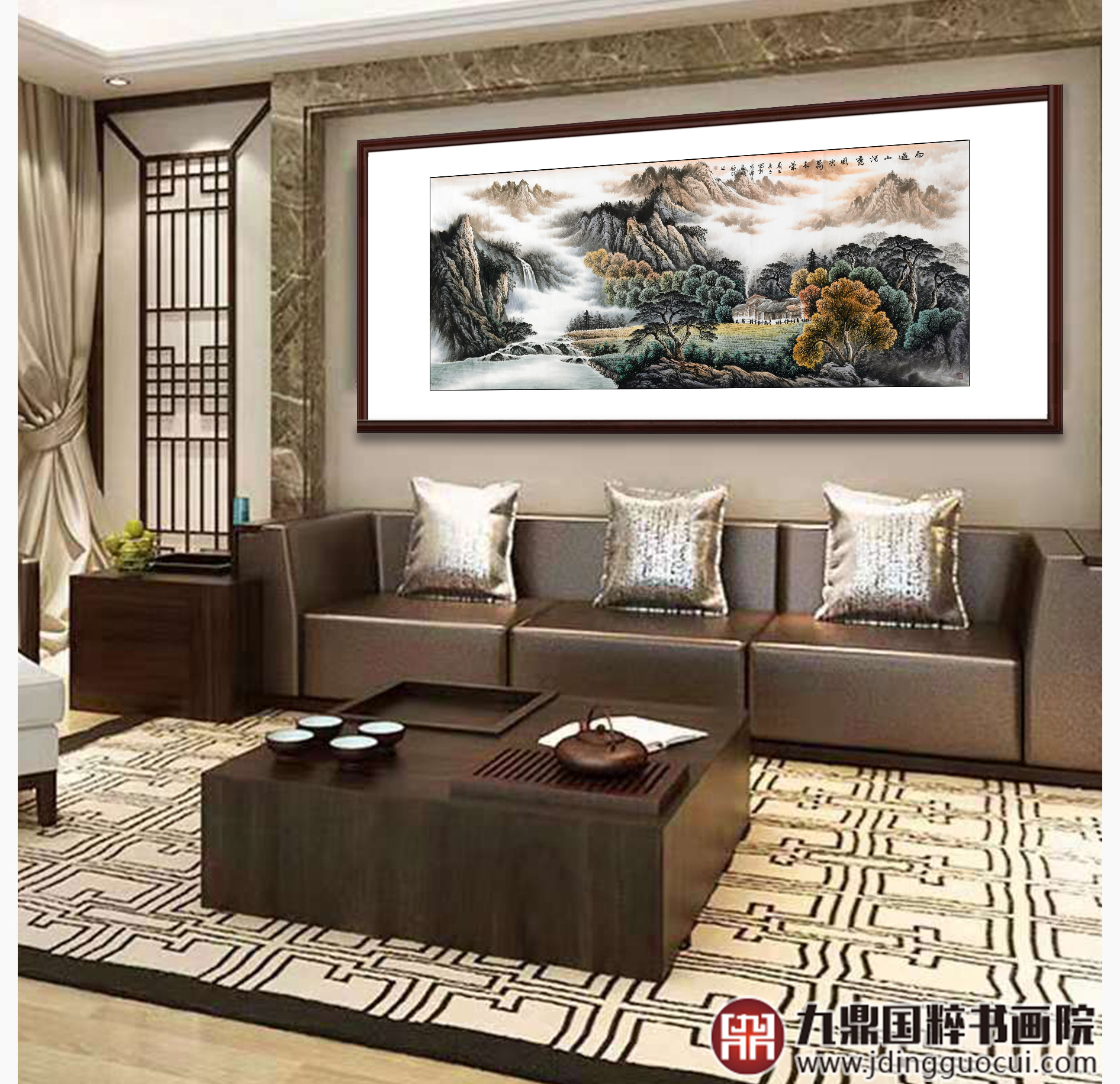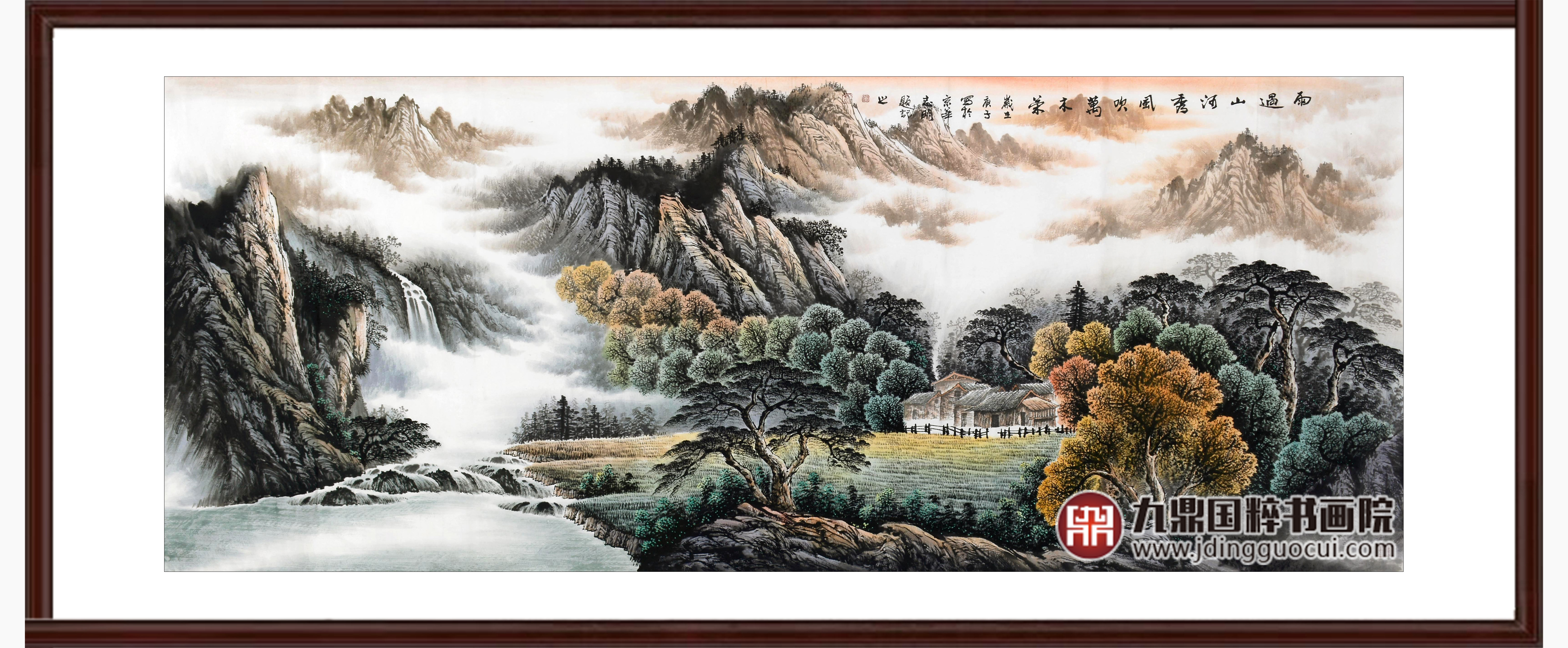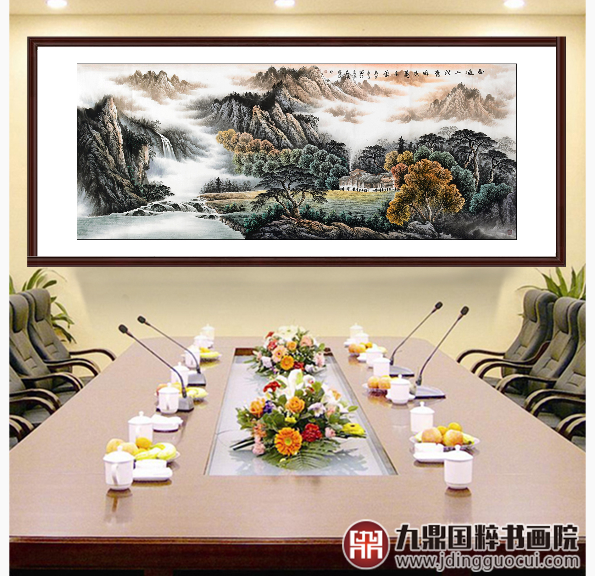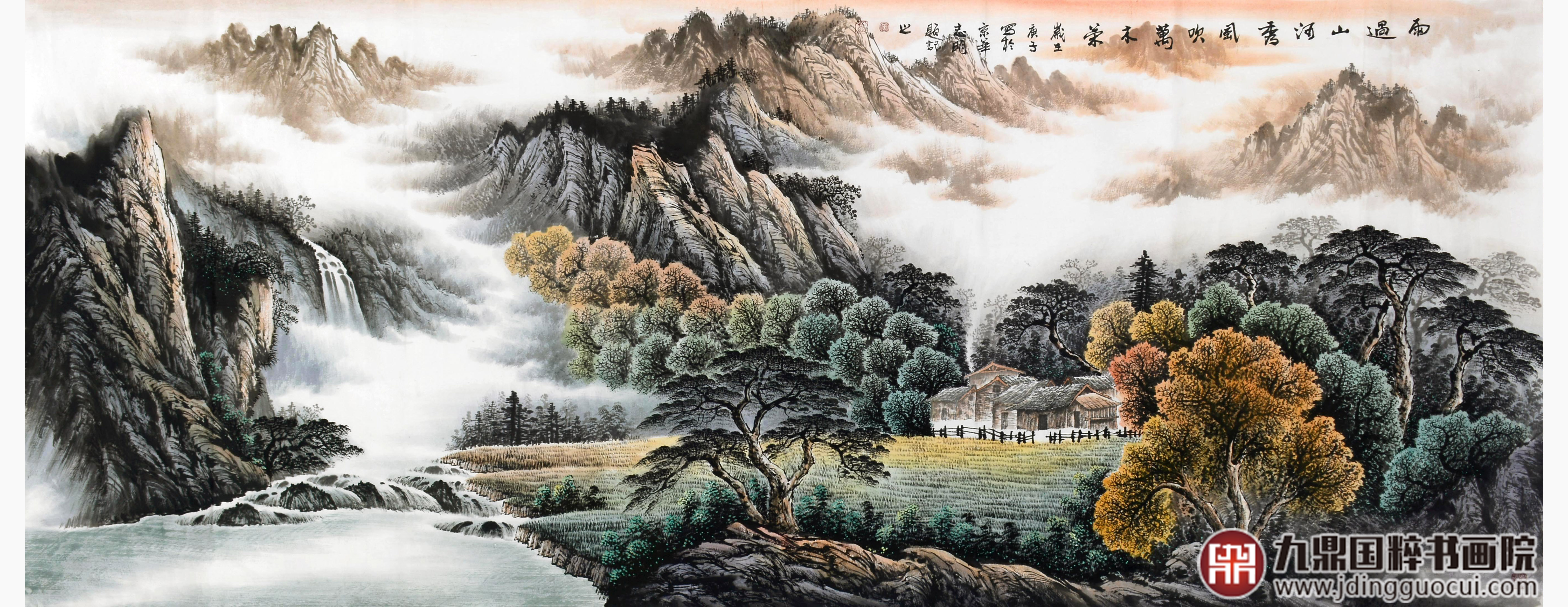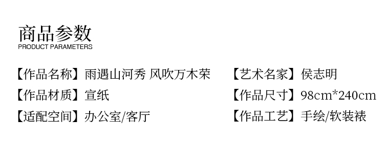 侯志明《雨遇山河秀 风吹万木荣》98*240cm 山水横幅作品 办公室/客厅挂画
