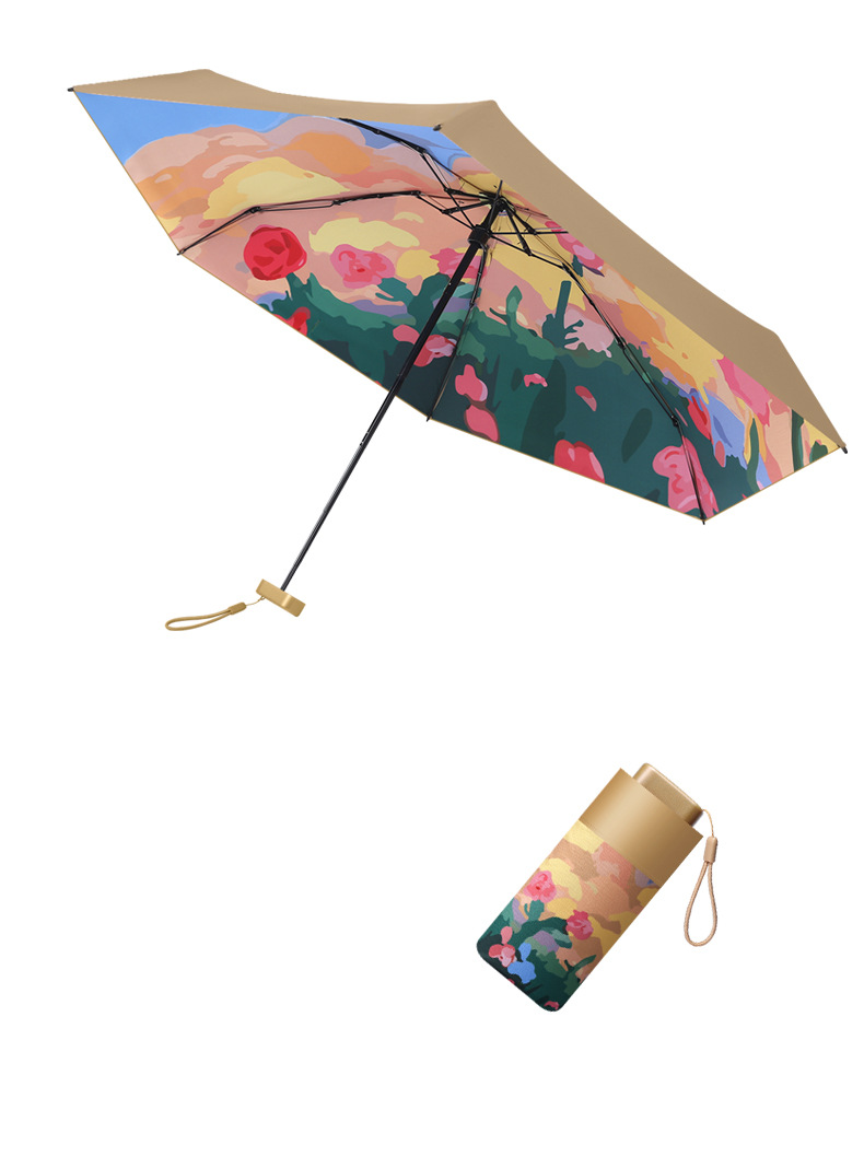 【掌心之物!轻奢手绘钛金防晒伞】至薄至轻迷你油画伞,遮阳防晒防紫外线,六折伞超轻口袋伞晴雨伞,小巧便携折叠雨伞防晒帽雨衣太阳伞夏日