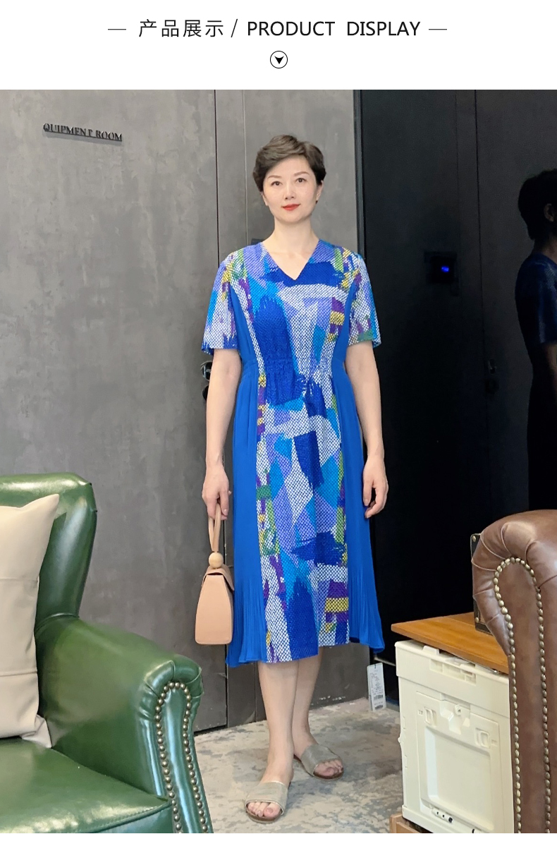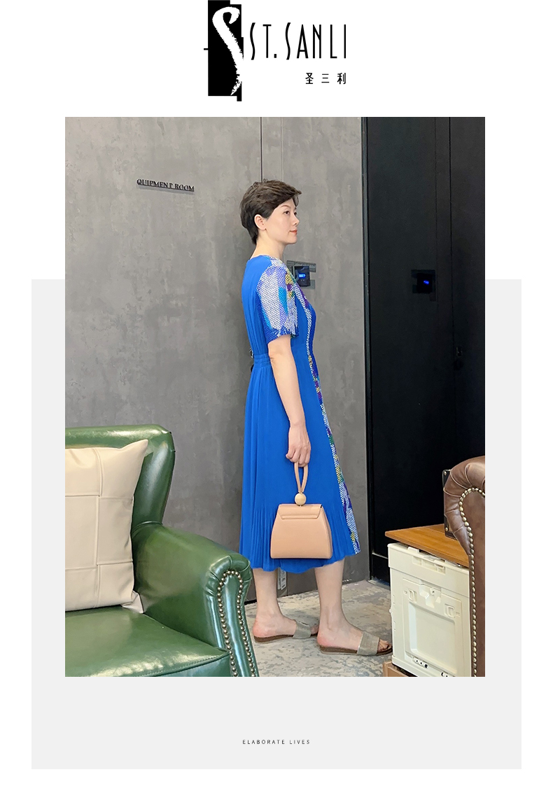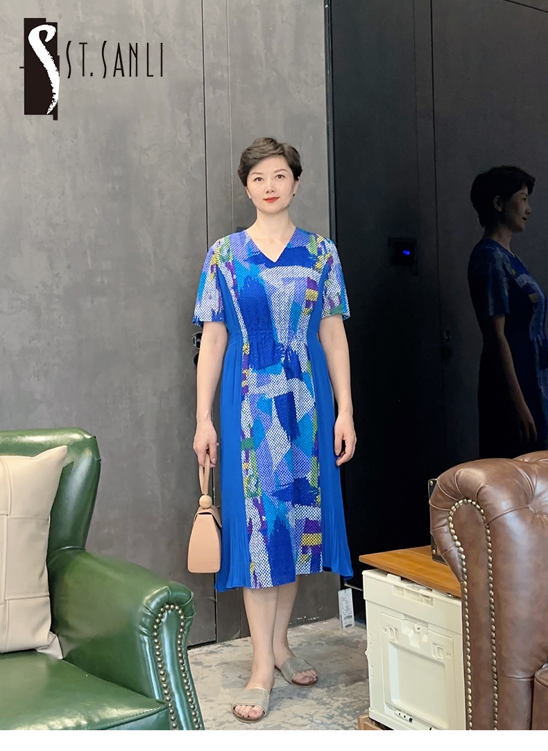 圣三利女装新夏季中长款V领雪纺花色连衣裙SL2027253