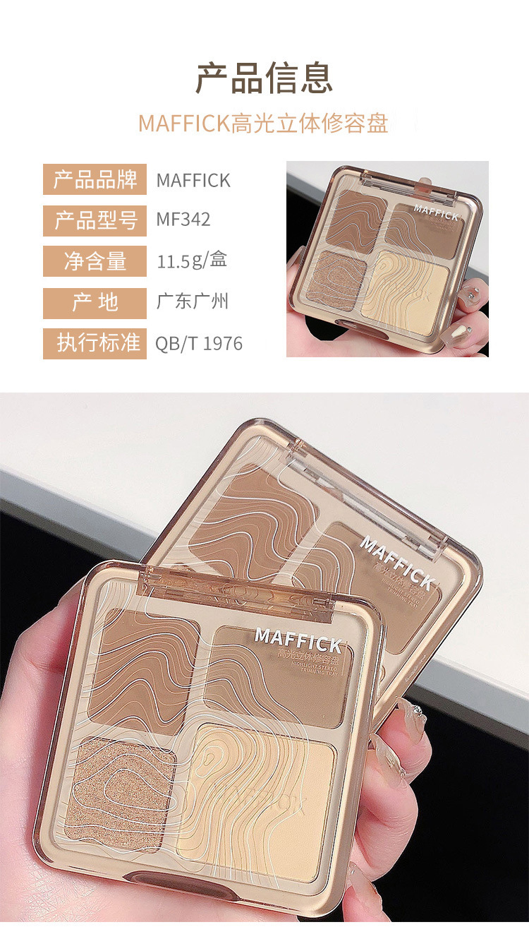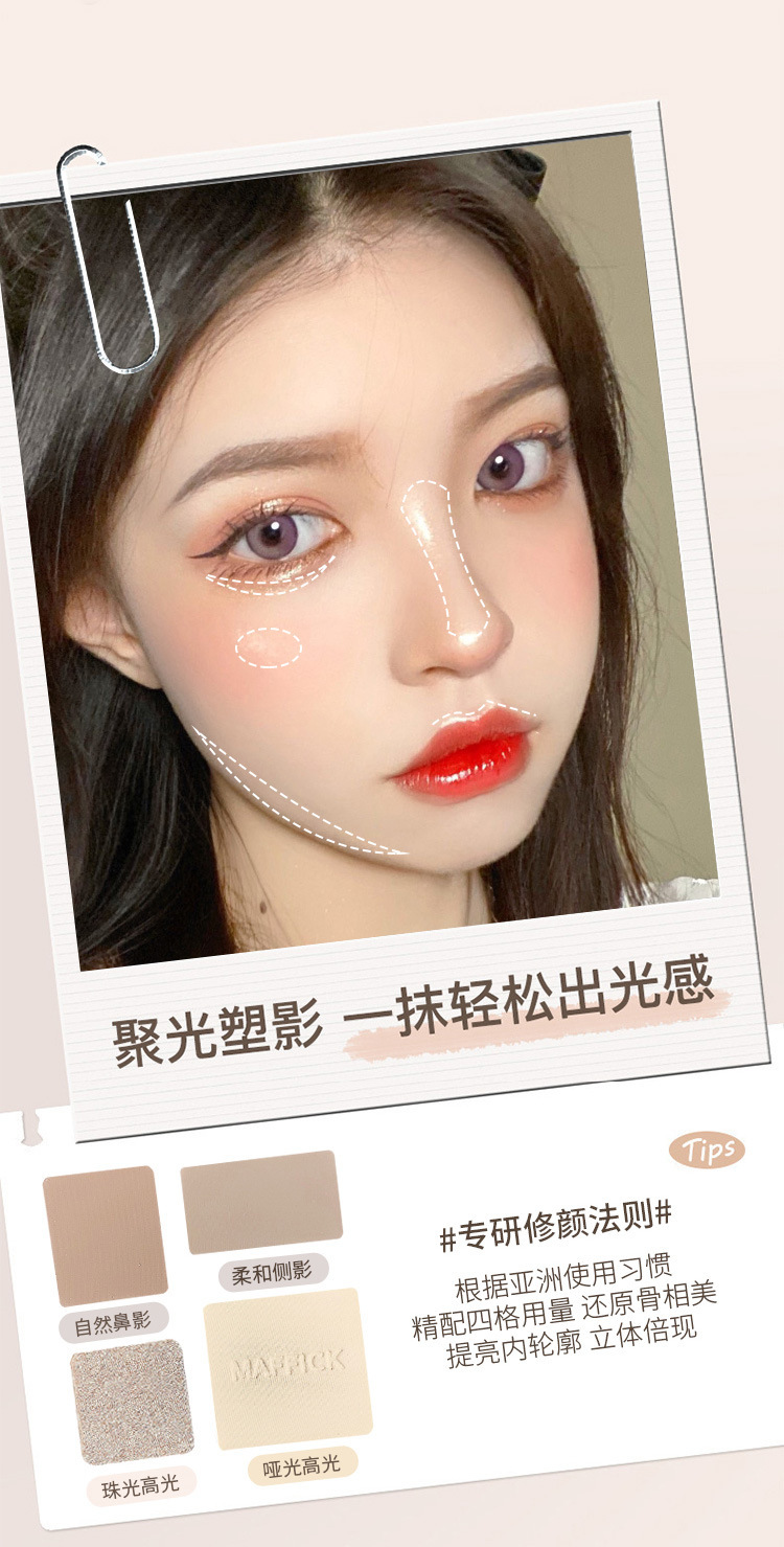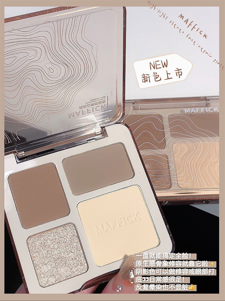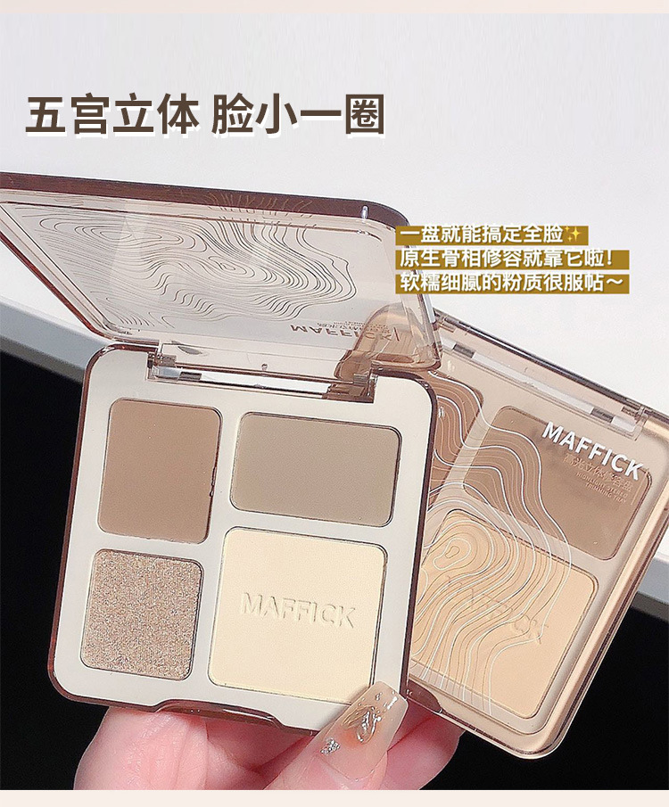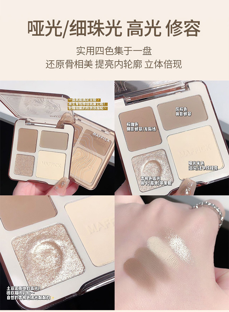 【打造撩人 立体塑颜4色修容盘!】MAFFICK四色修容盘 高光修容一体 气质撩人初学者哑光提亮鼻影阴影综合盘 粉质细腻不脱妆提亮夫色彩妆