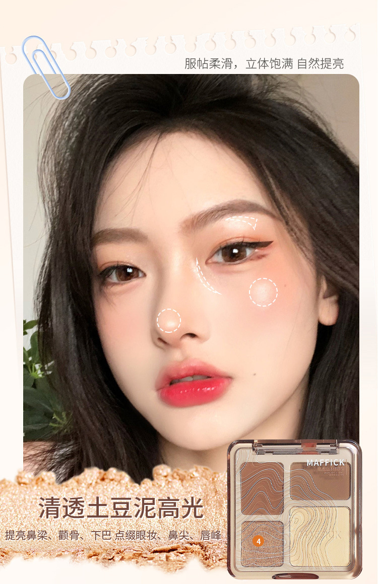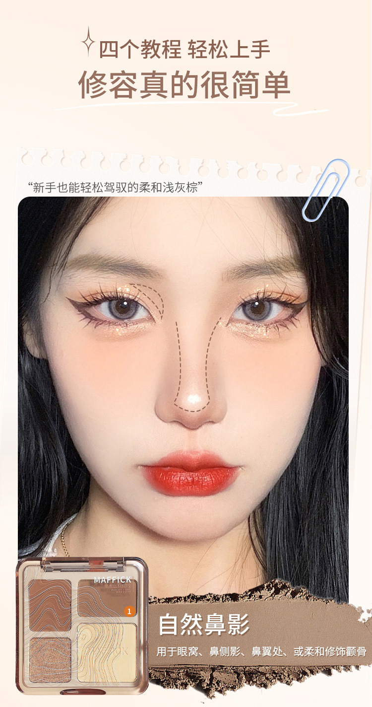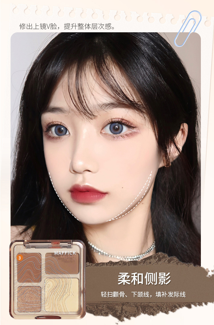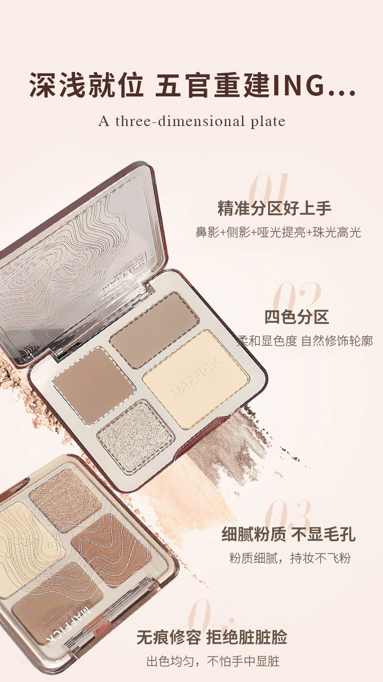 【打造撩人 立体塑颜4色修容盘!】MAFFICK四色修容盘 高光修容一体 气质撩人初学者哑光提亮鼻影阴影综合盘 粉质细腻不脱妆提亮夫色彩妆