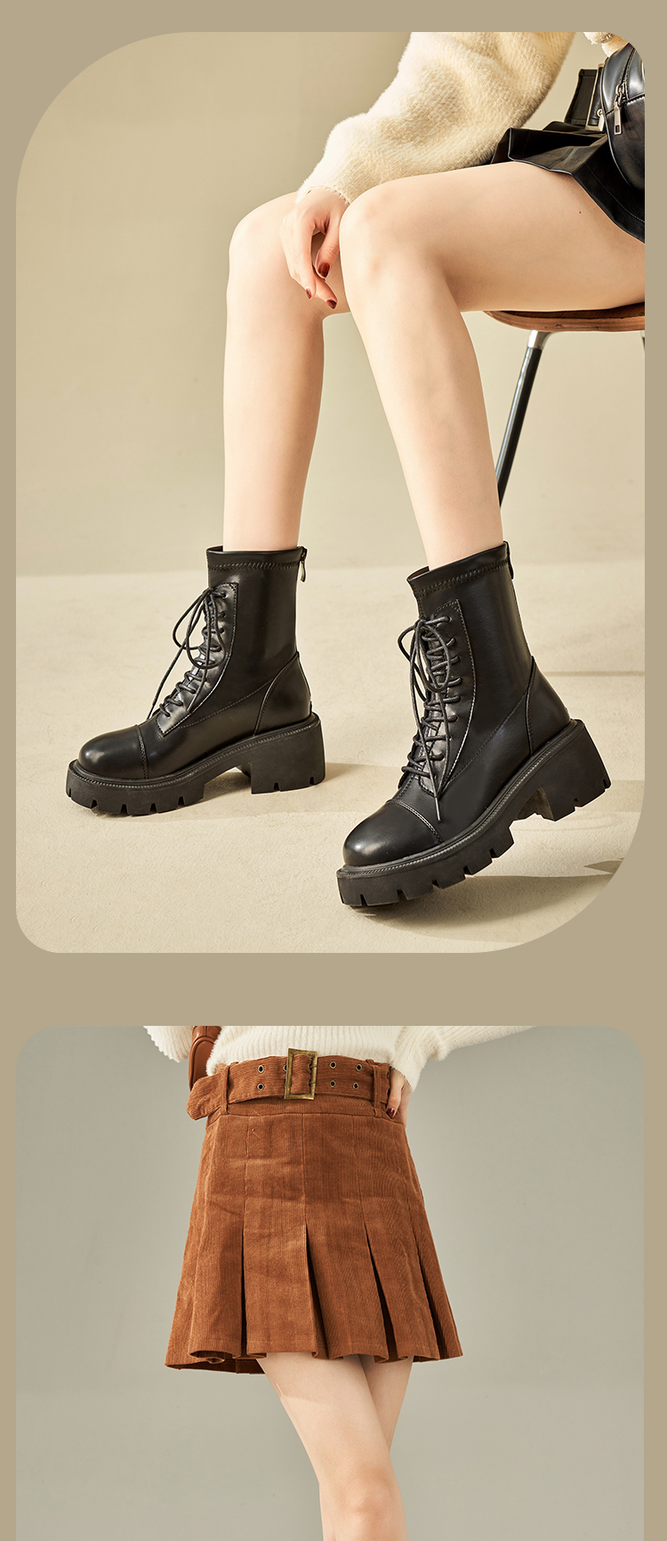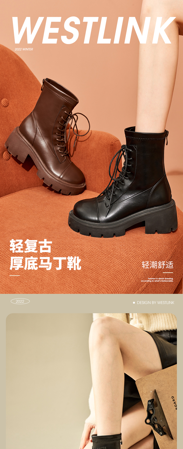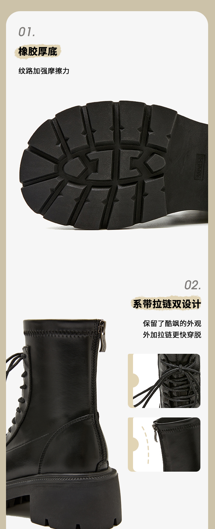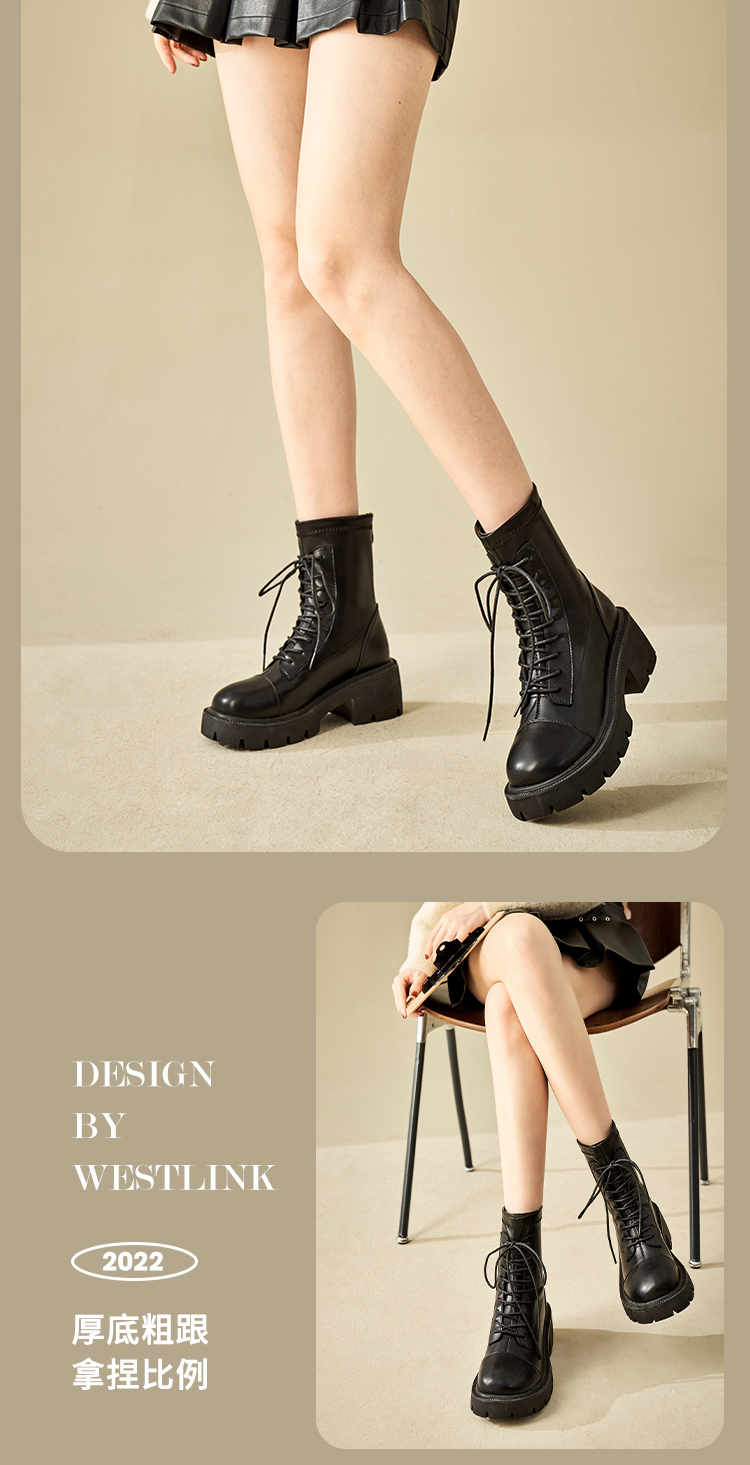 【拼】西遇马丁靴女秋冬季新款女鞋甜酷黑色is美式复古机车鞋子D1923677/ D0024035