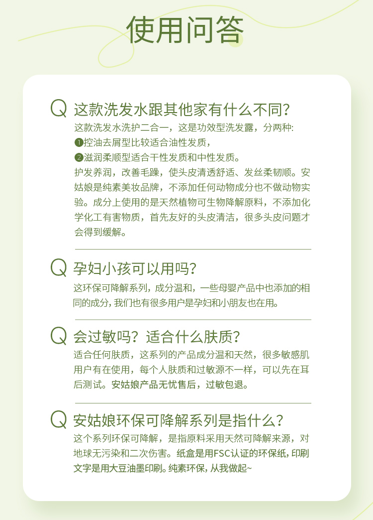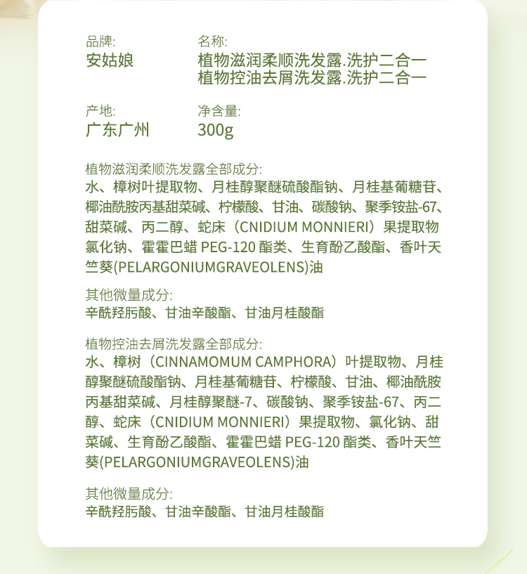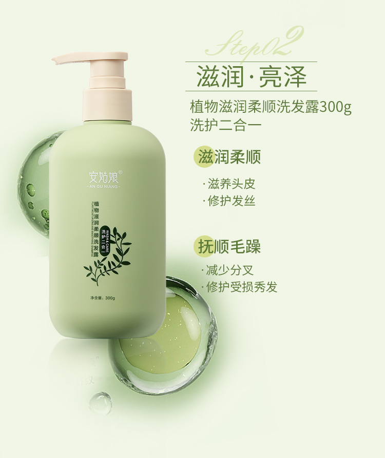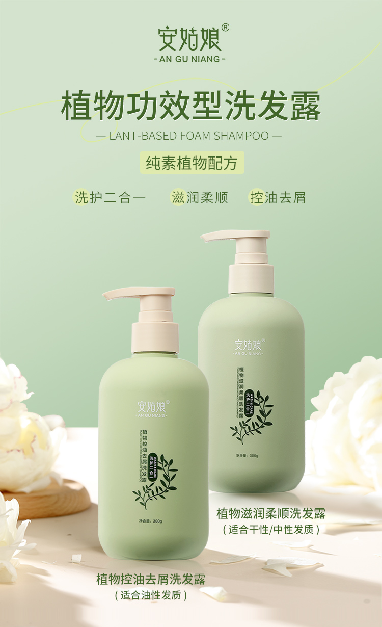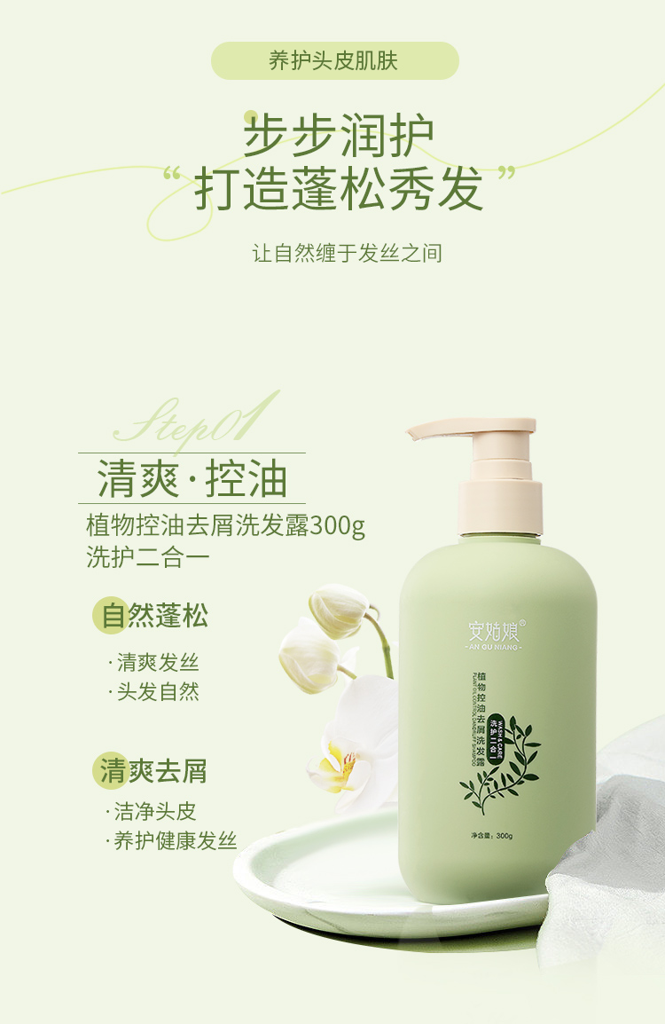 安姑娘植物功效型洗发露 去屑蓬松滋润柔顺300g/瓶【京东快递送货上门】