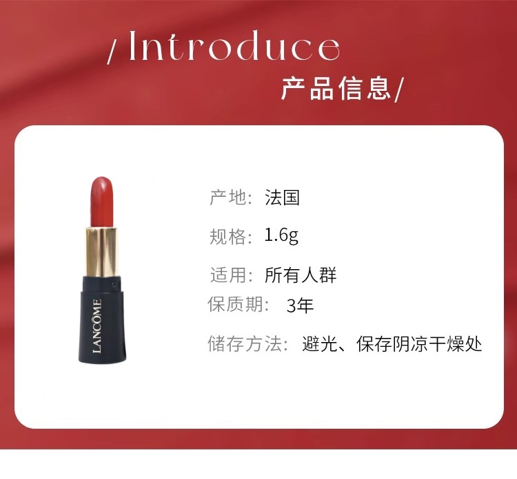 2支兰蔻菁纯小蛮腰黑管口红1.6g中小样【多色号可选】