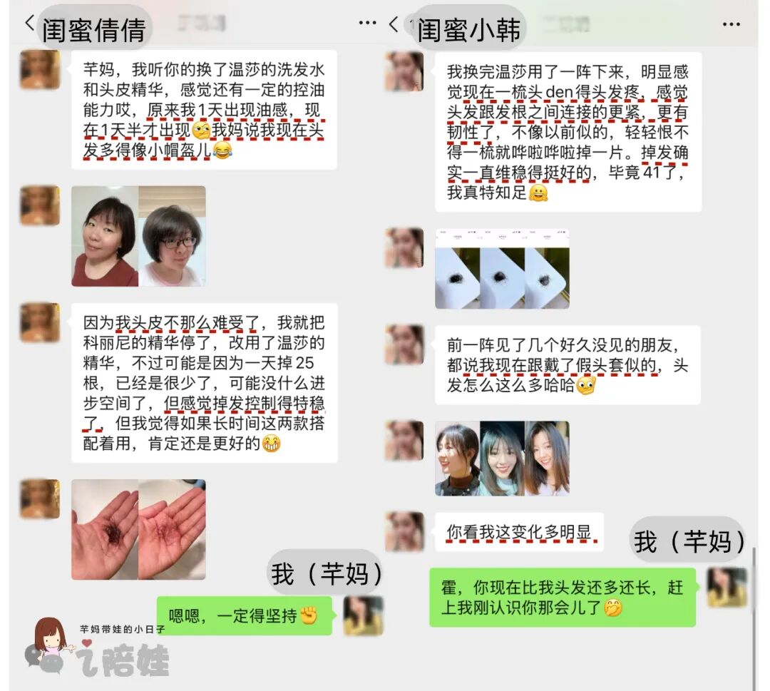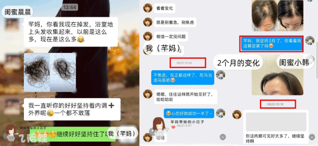 蕞夸张是我这俩闺蜜,她们按摩头皮+吃益发膏+用洗发水,一个刚开始1周,一个坚持了2个月,给我发微信: