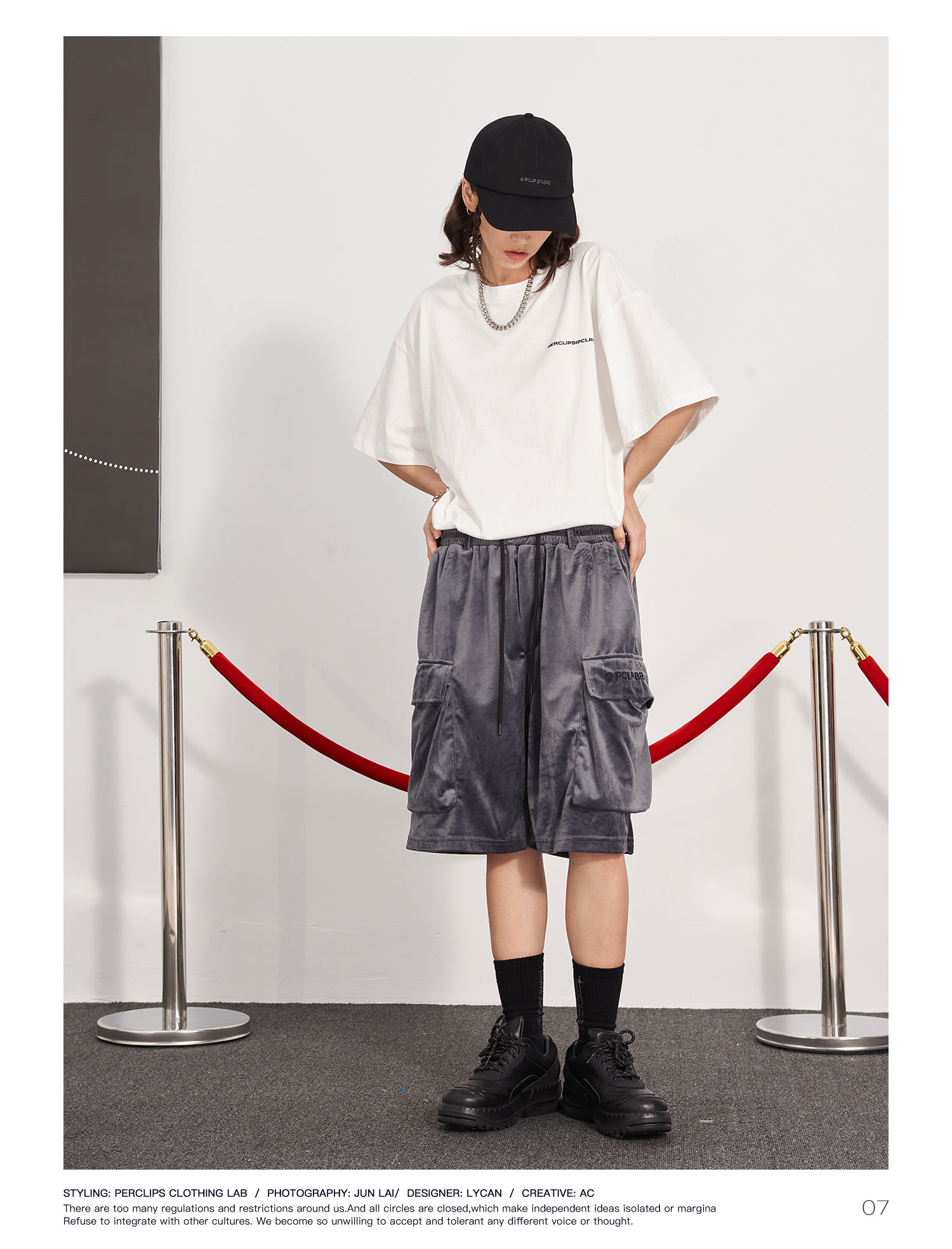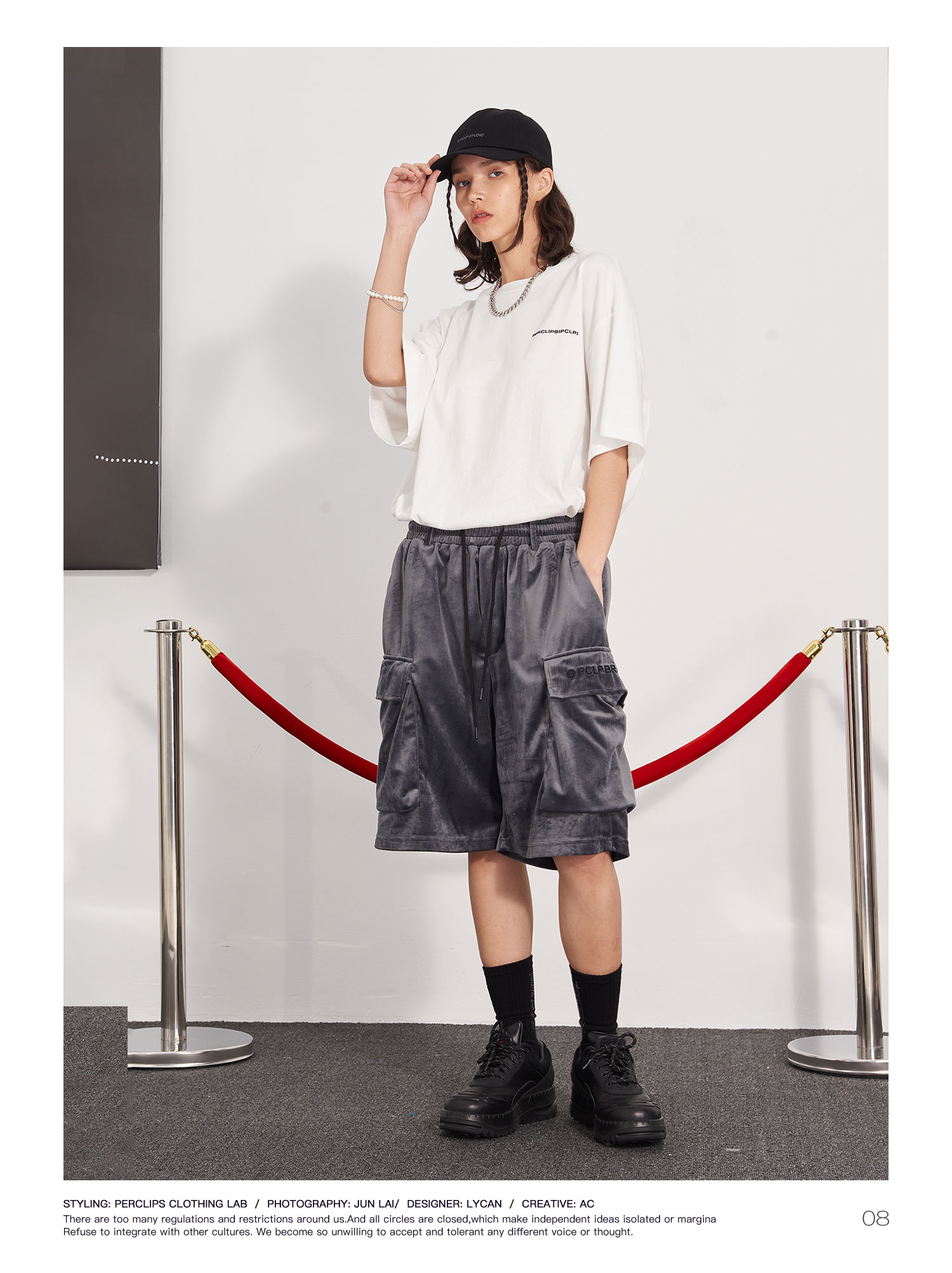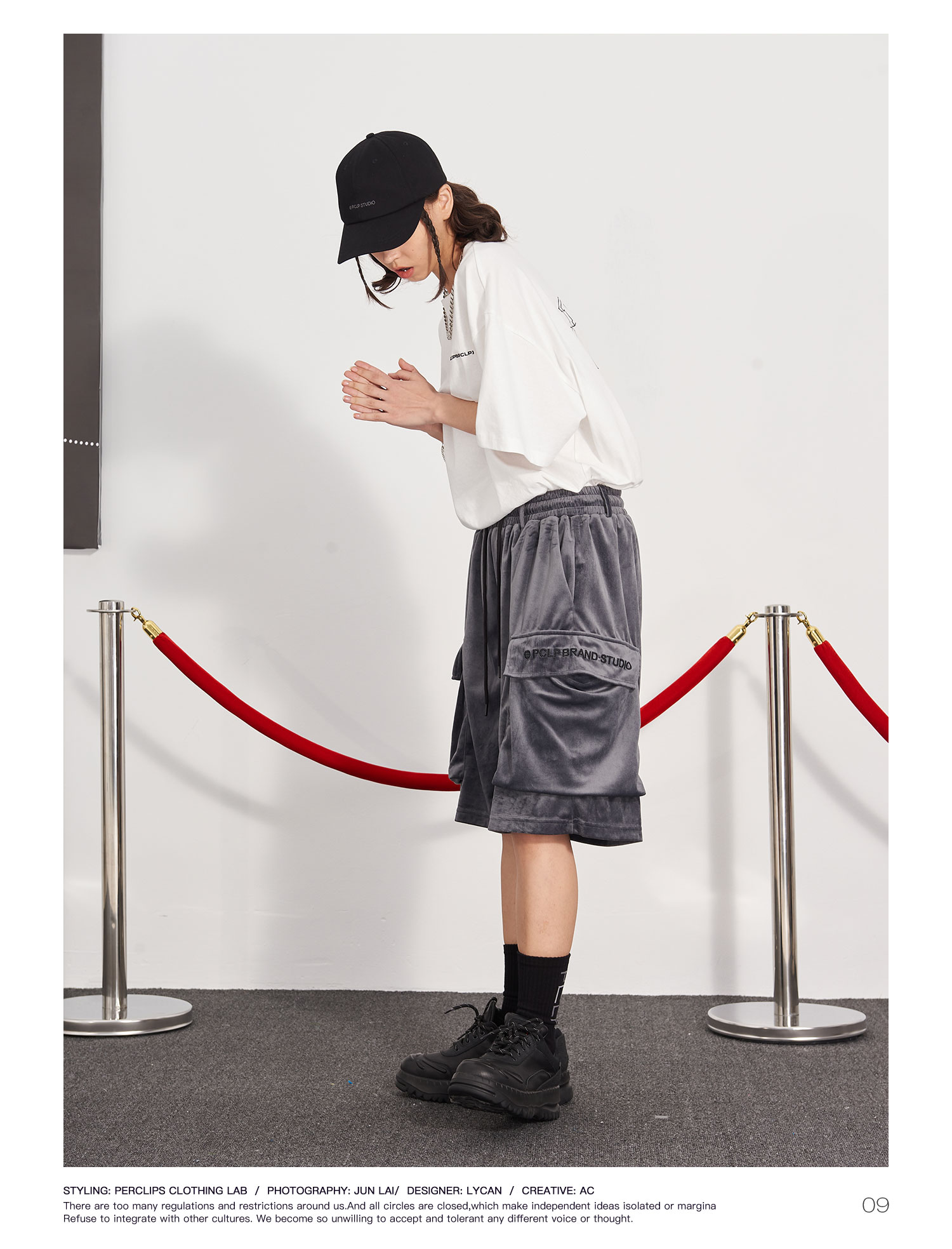 PCLP(PERCLIPS) 口袋刺绣丝绒短裤