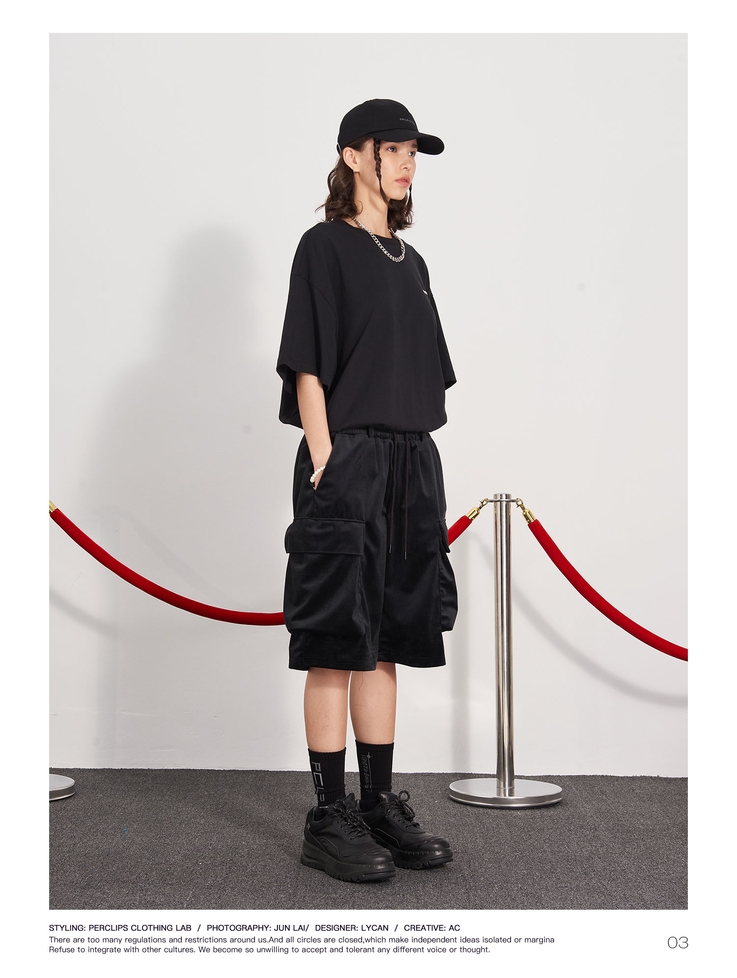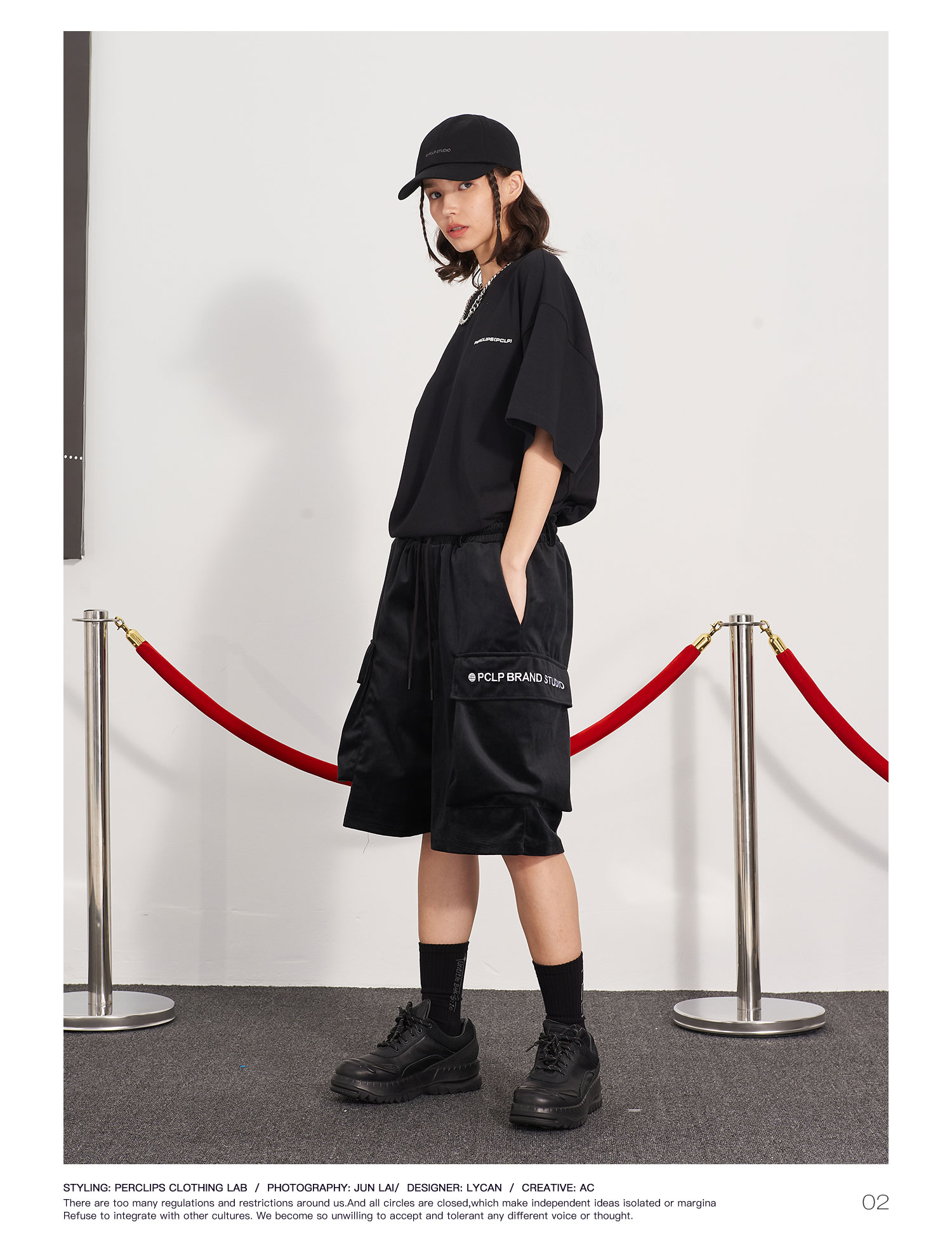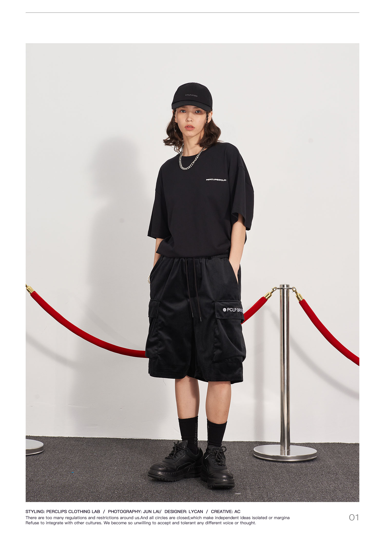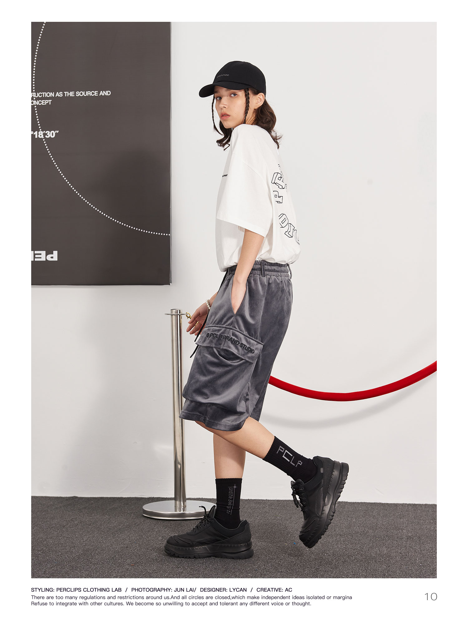 PCLP(PERCLIPS) 口袋刺绣丝绒短裤