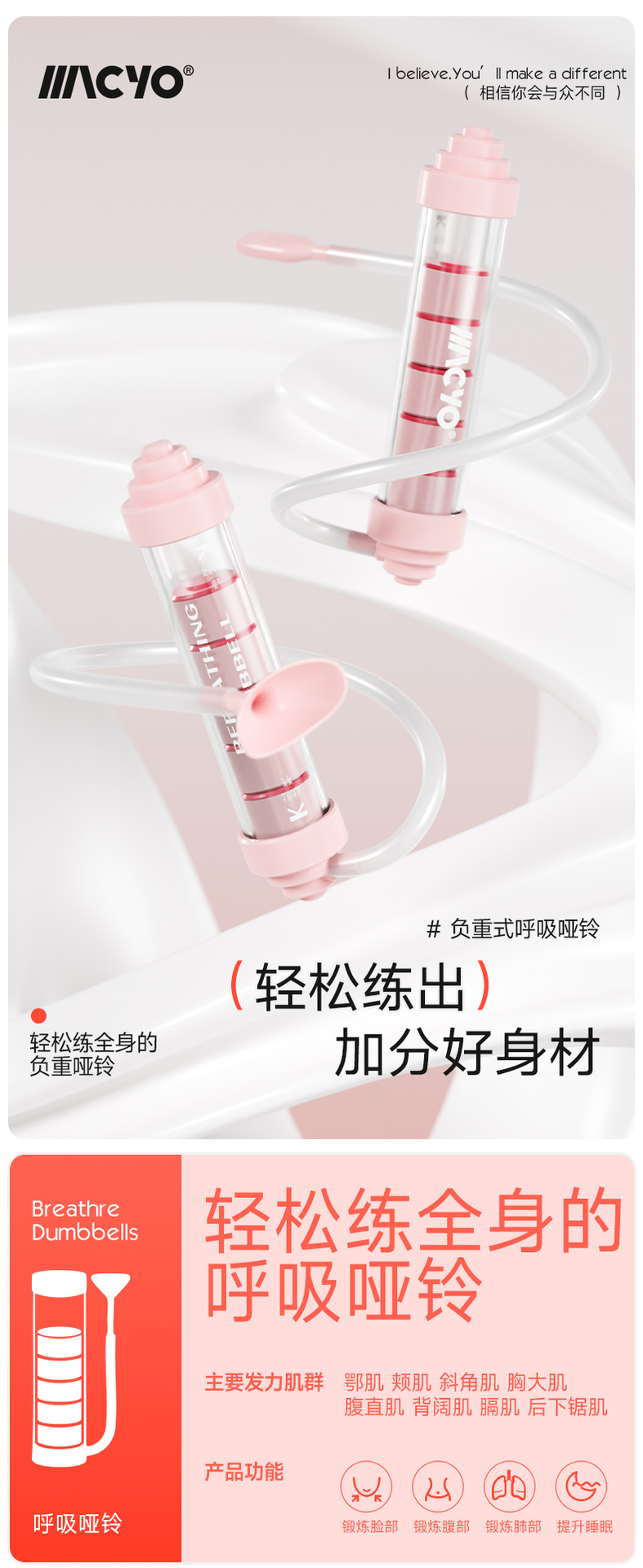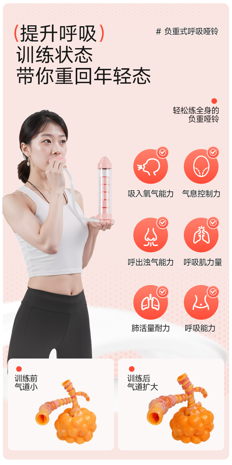 腹式呼吸哑铃肺活量肺部肺功能锻炼核心训练提高耐力健身