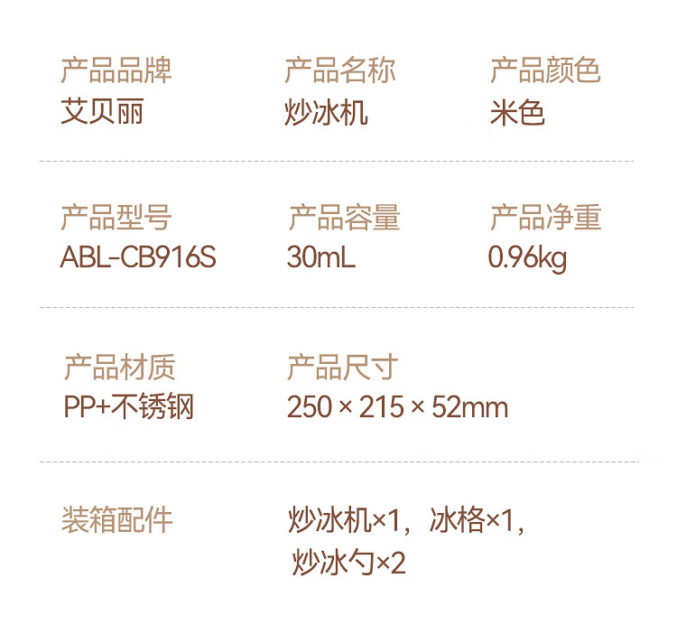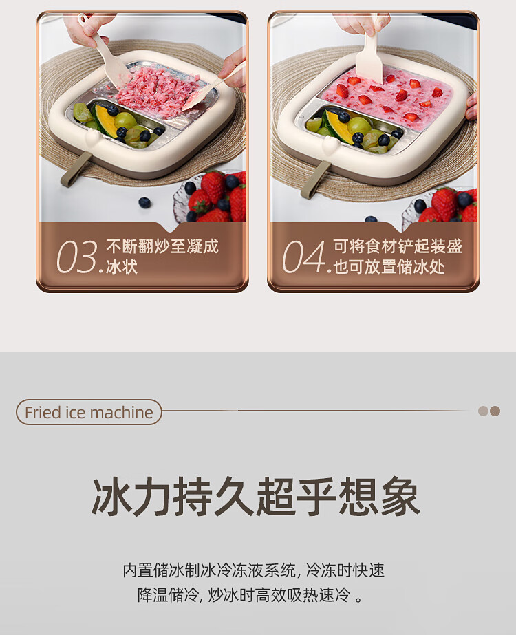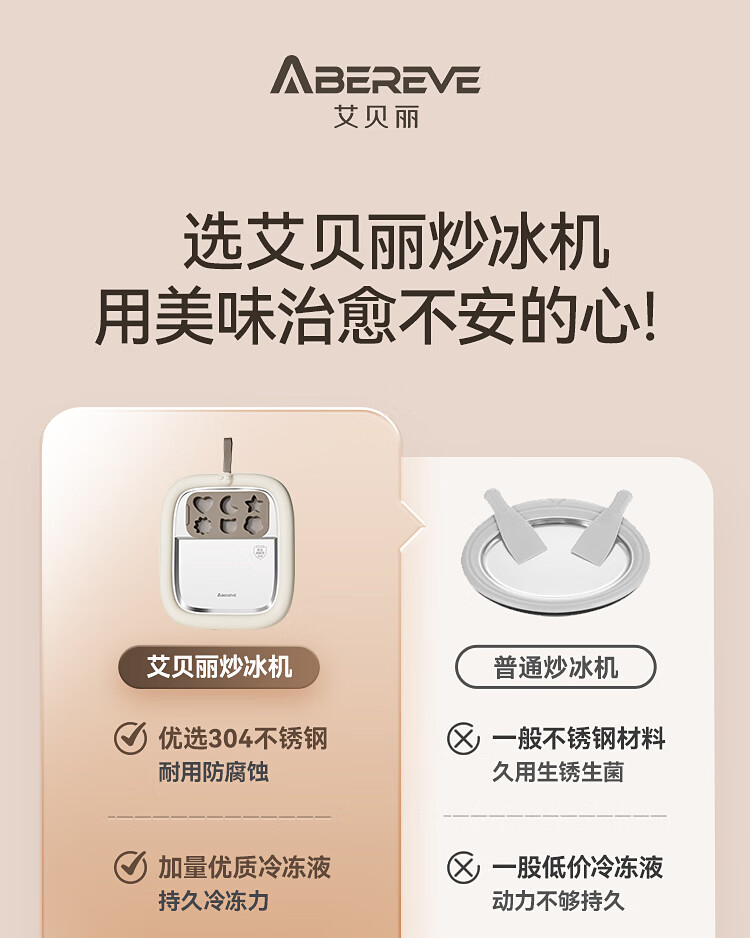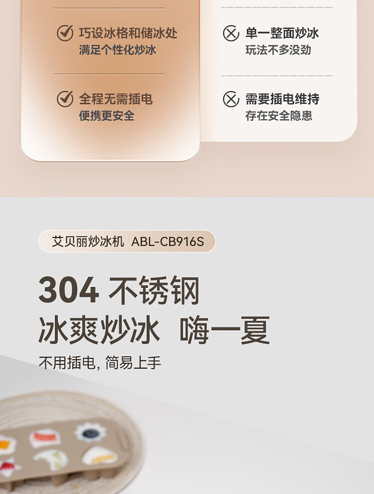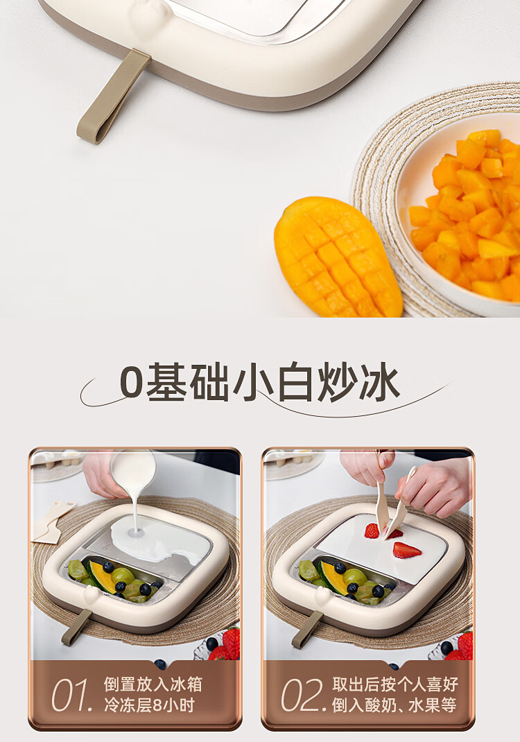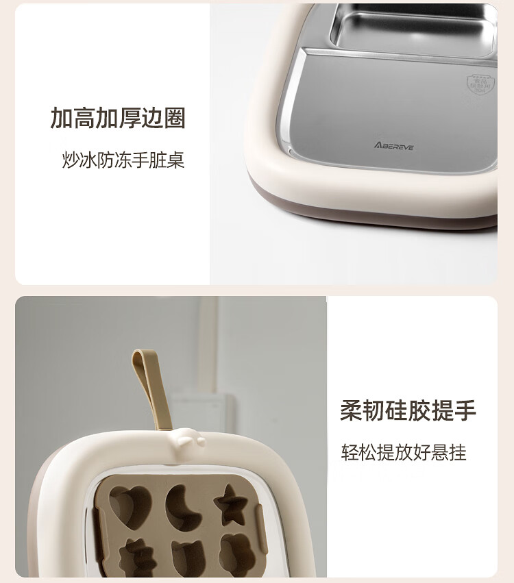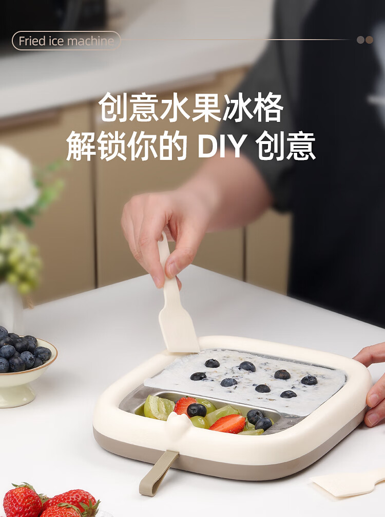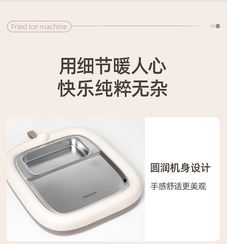 【多样屋专柜】艾贝丽炒冰机 小型炒酸奶机食品级304不锈钢炒酸奶盘炒冰沙机【赠送炒铲】 白色