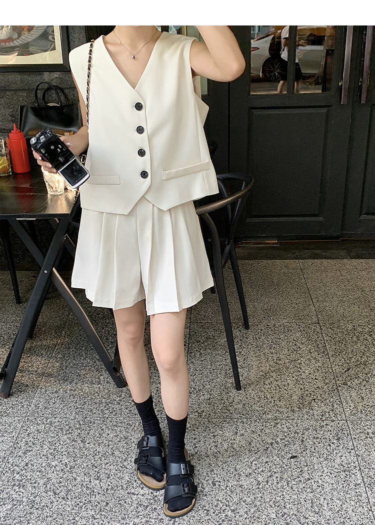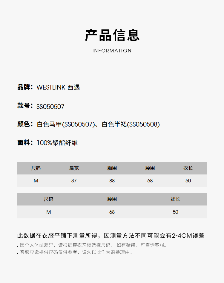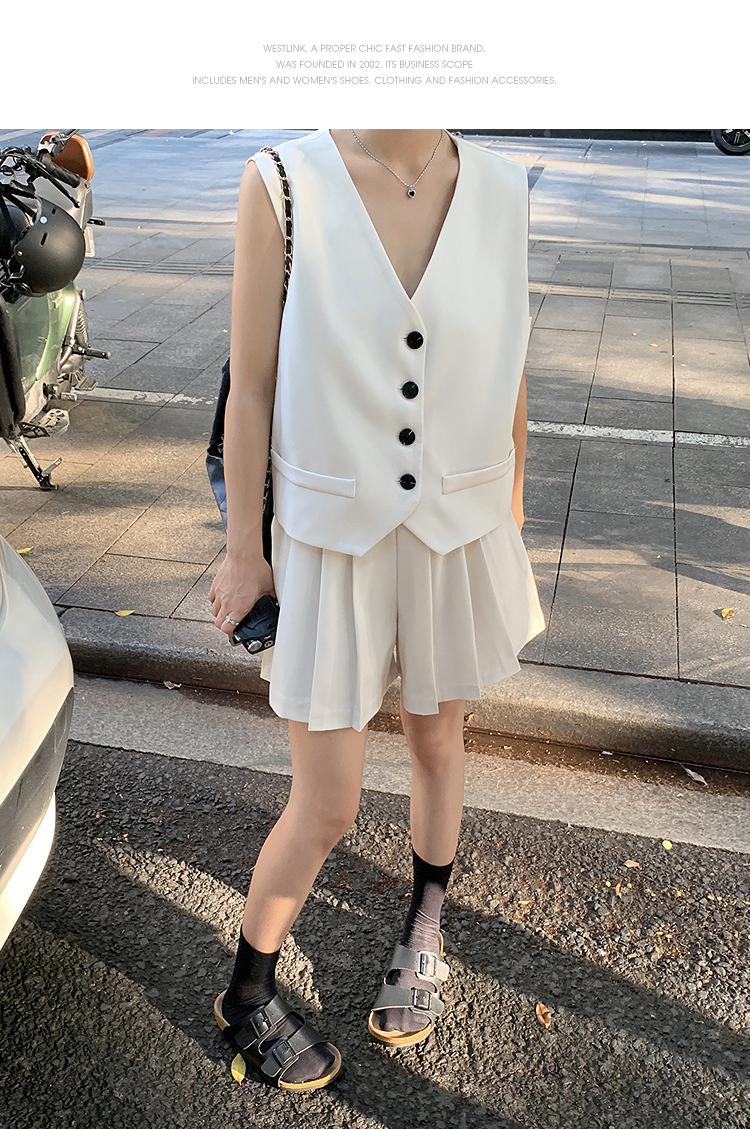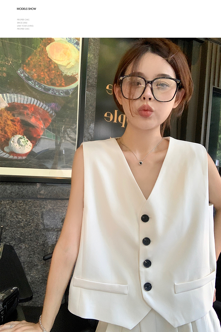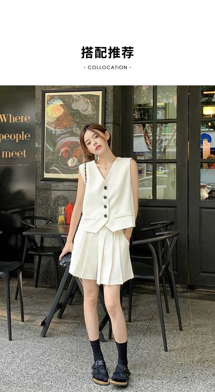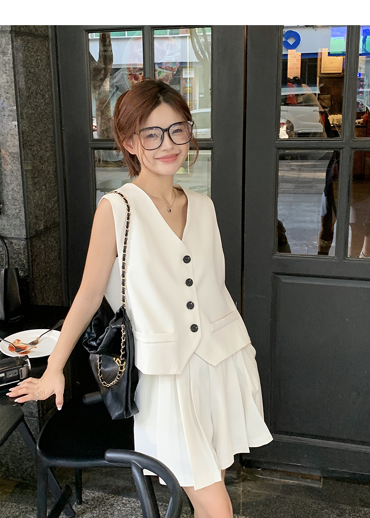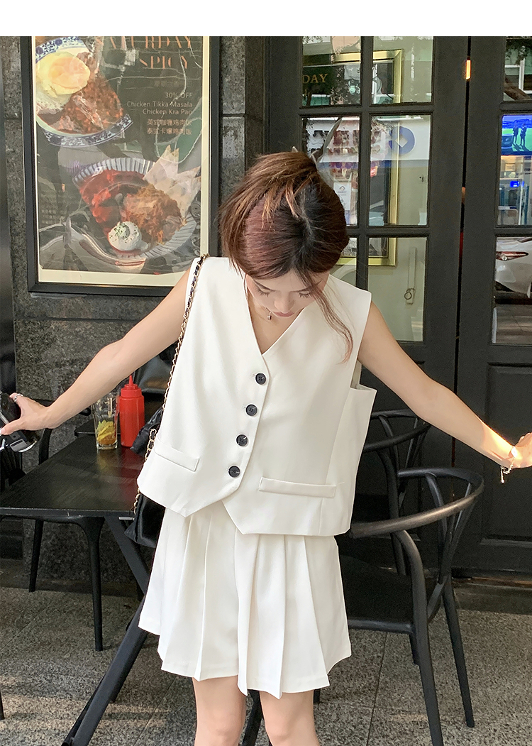 西遇马甲背心套装女夏季新款白色高腰A字百褶裤裙两件套SS050507/SS050508