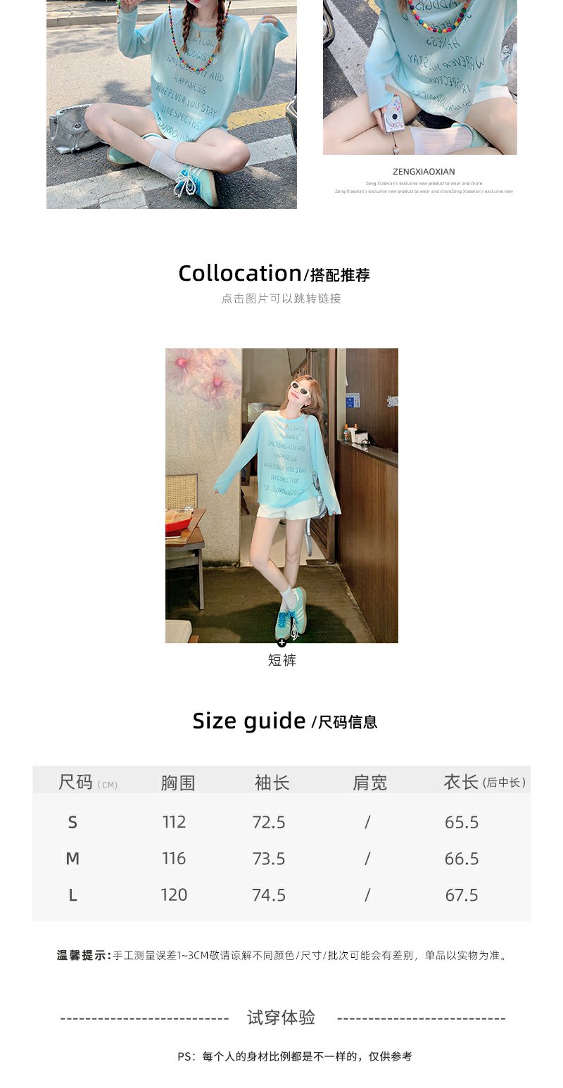 <曾小咸推荐>宽松多巴胺蓝色防晒罩衫长袖T恤【预售3-15天发货】