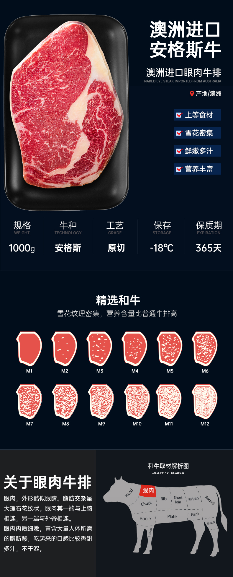澳洲国家甄选(M3+)安格斯眼肉牛排4份