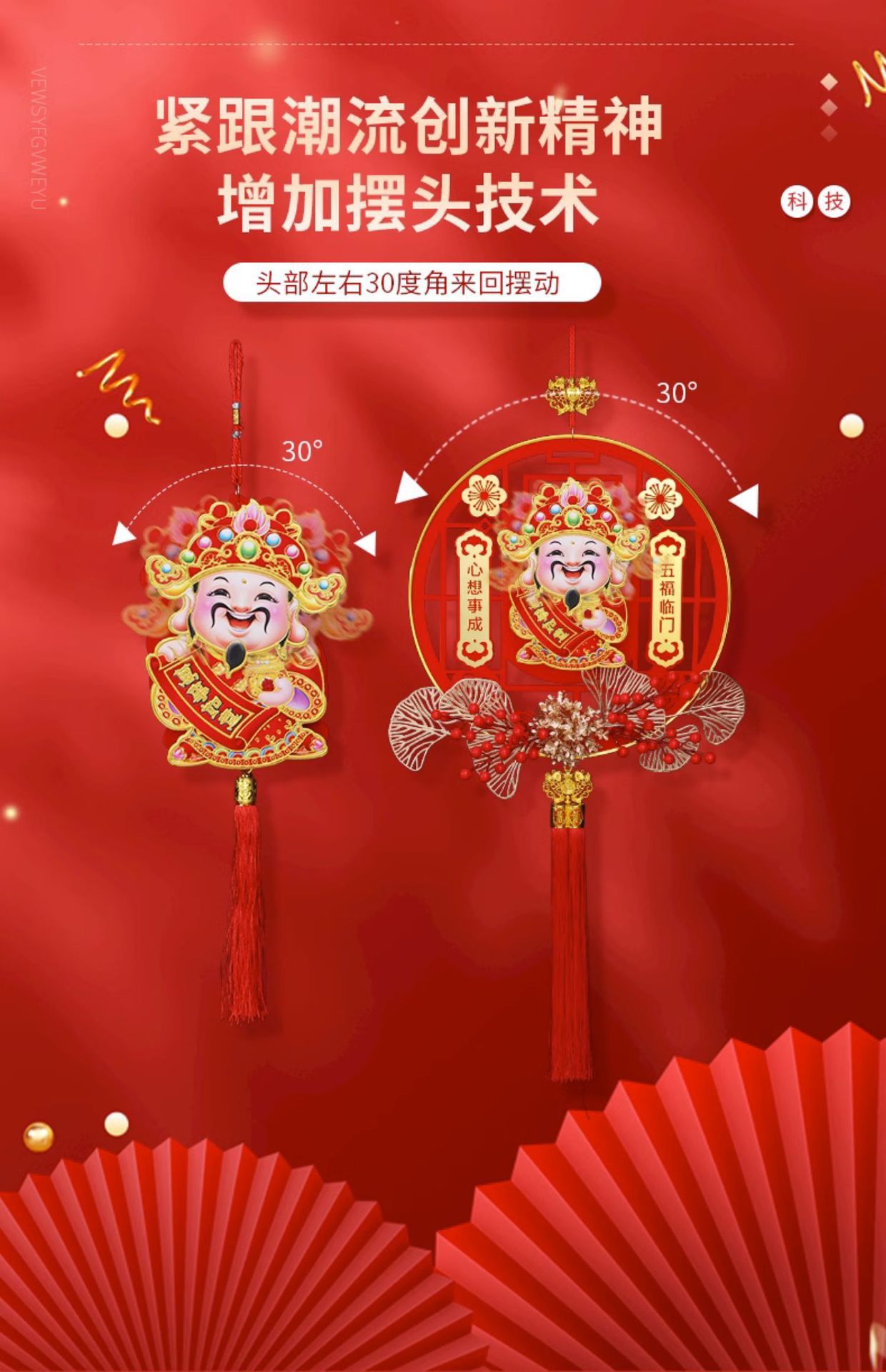 【祥蛇送福❗️年国潮摇头财】电动立体 中国结圆形 新年挂件 客厅绒面亚克力春节挂饰蛇年特价