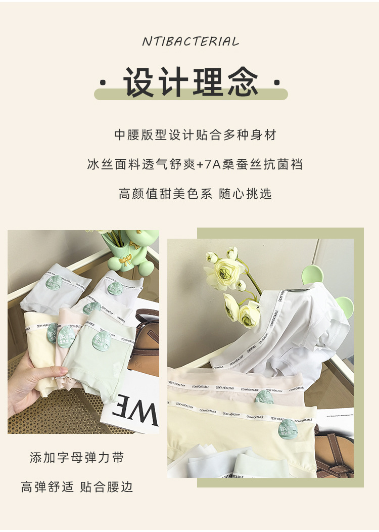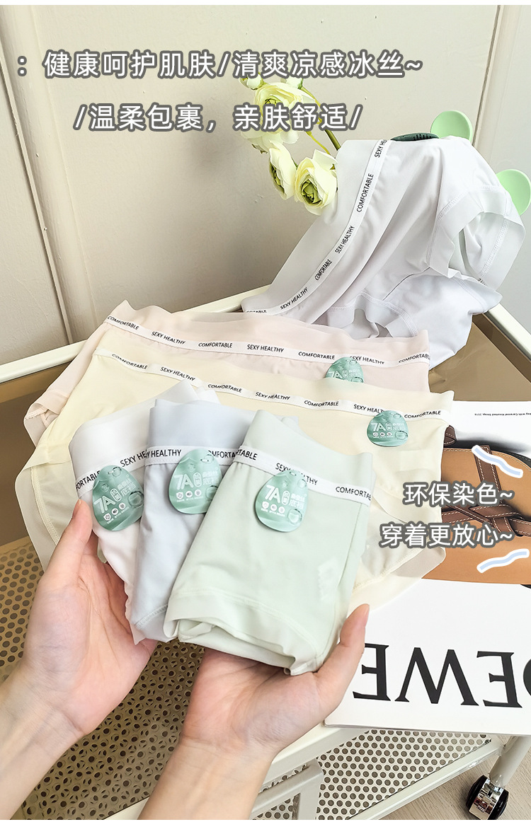【礼盒装!冰丝内裤】夏薄款字母透明冰丝内裤少女中腰温变桑蚕丝7A档内裤礼盒装,高弹不勒身,柔软不束缚。ry