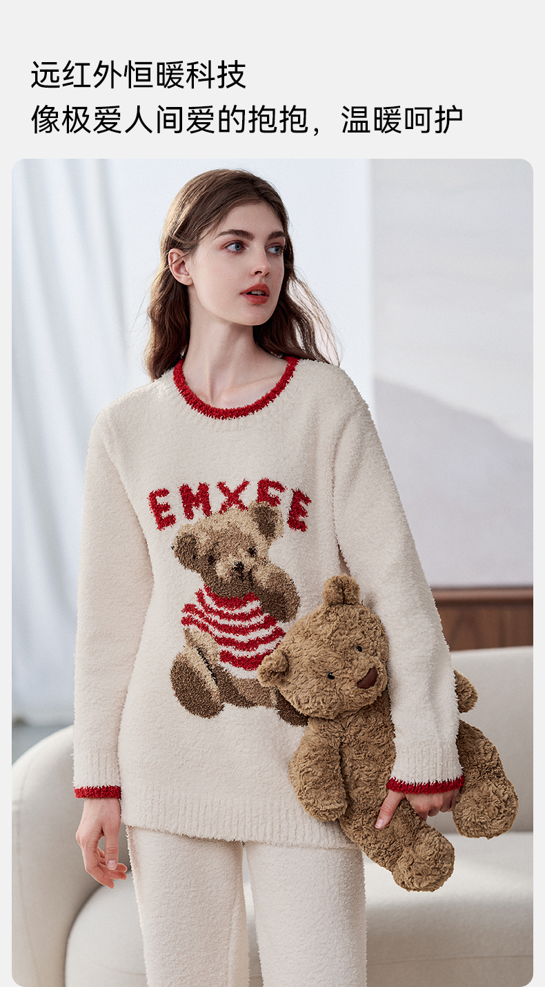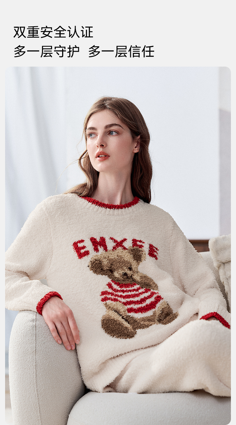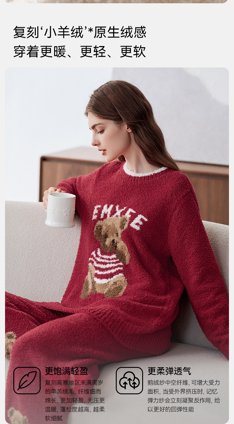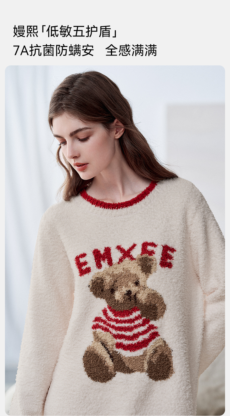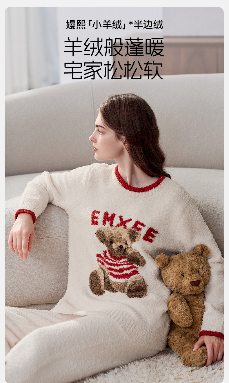 【家居服专场】嫚熙秋冬季小熊半边绒女士睡衣小羊绒女款加厚加绒家居服2024新款